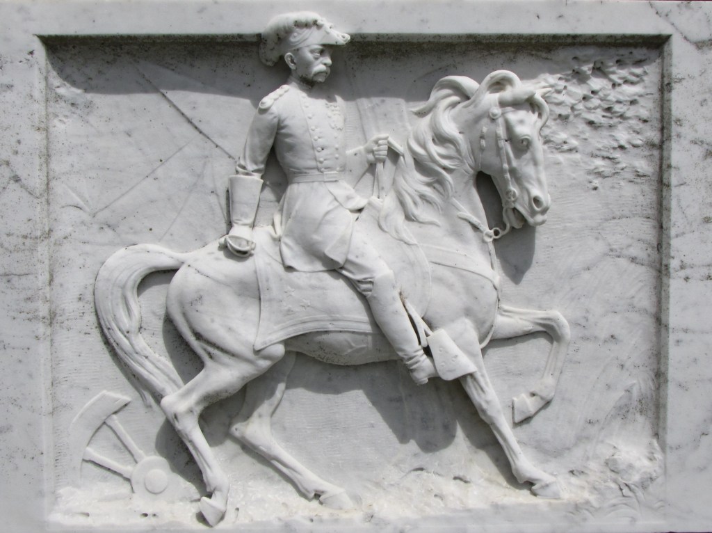 The white marble monument in the Hills of Eternity Memorial Park in Colma, California, depicts a Union Civil War soldier astride a horse. In the lower left-hand corner of the scene is a broken wheel. Like many symbols—the hanging and broken bud, the broken column, the empty chair—the broken wheel represents the end of life’s journey. The wheel is a metaphor for the circle of life which is broken by death.