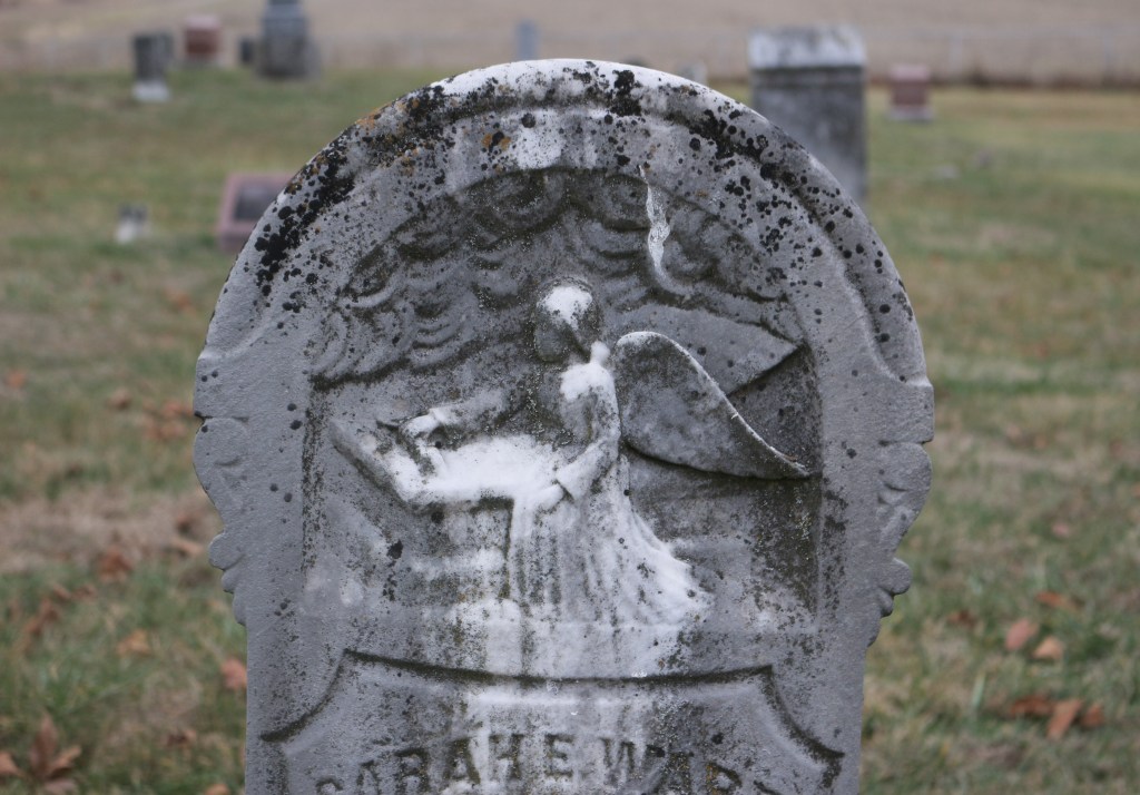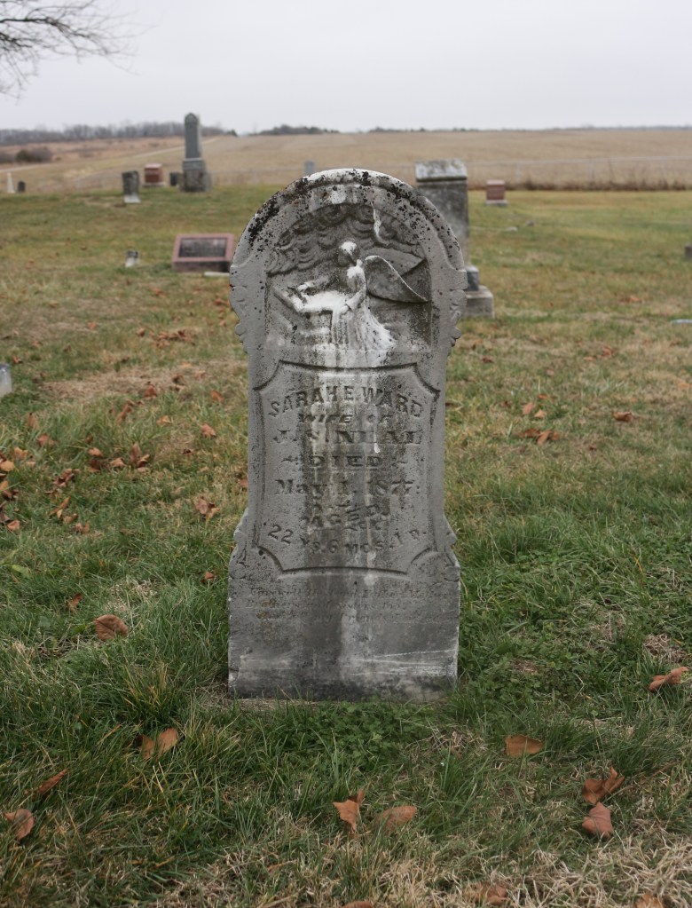Palmer’s Prairie Church of Christ in rural Sullivan County, Indiana, is no longer, but the church graveyard is, and is a testament to the congregation that once worshipped there. Several hundred tombstones mark the graves of former congregants, including the stained and weathered white marble tablet of Sarah Ward Neal.