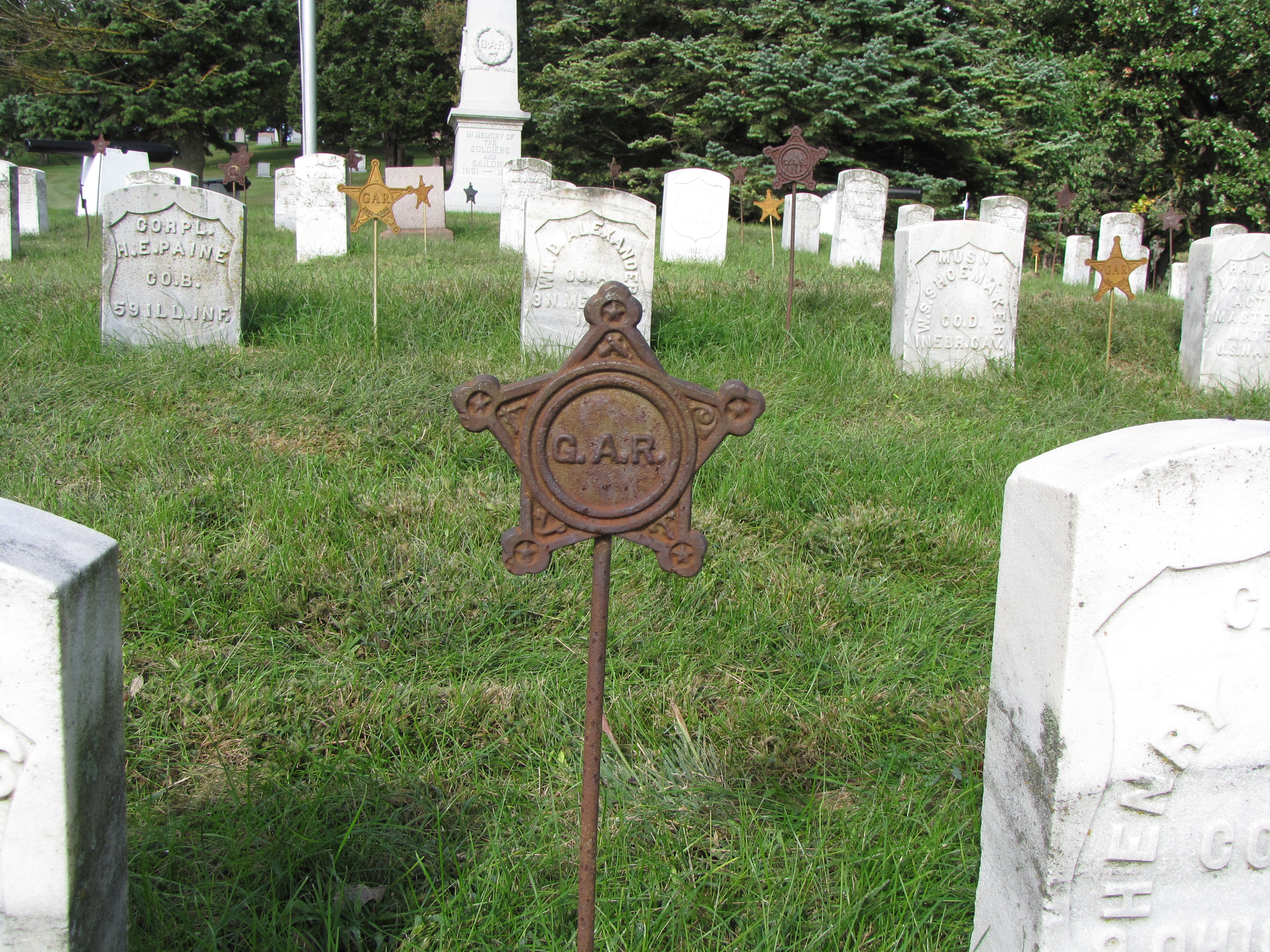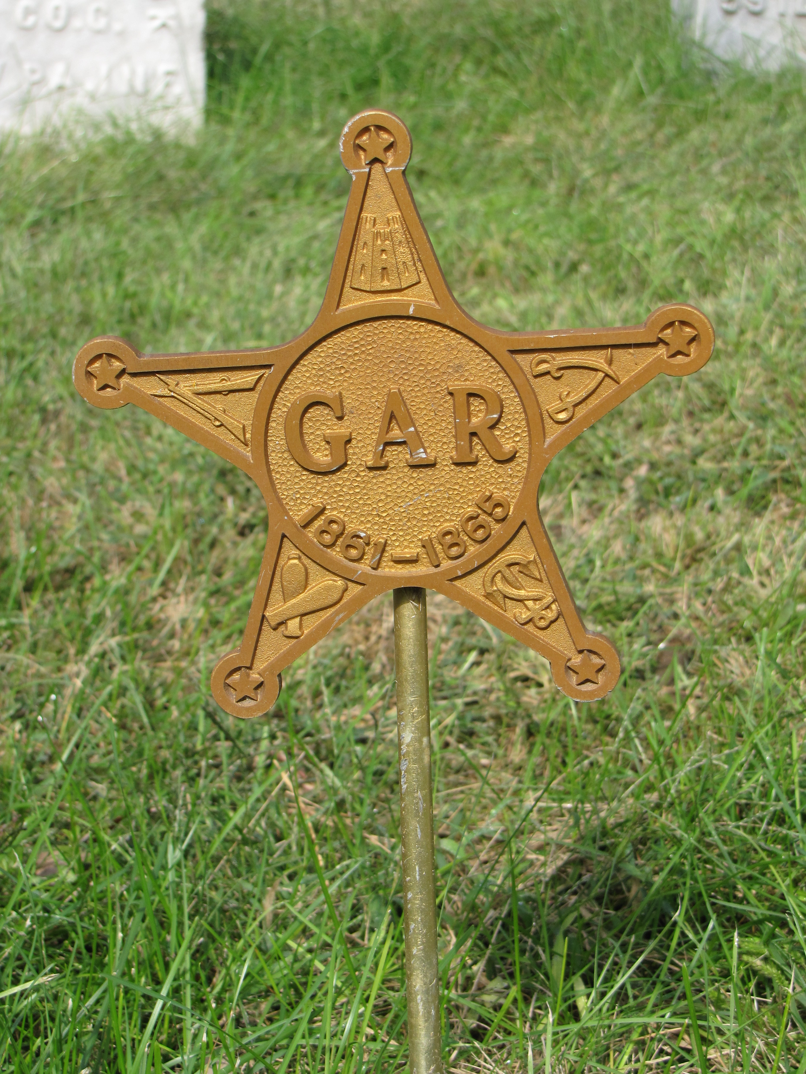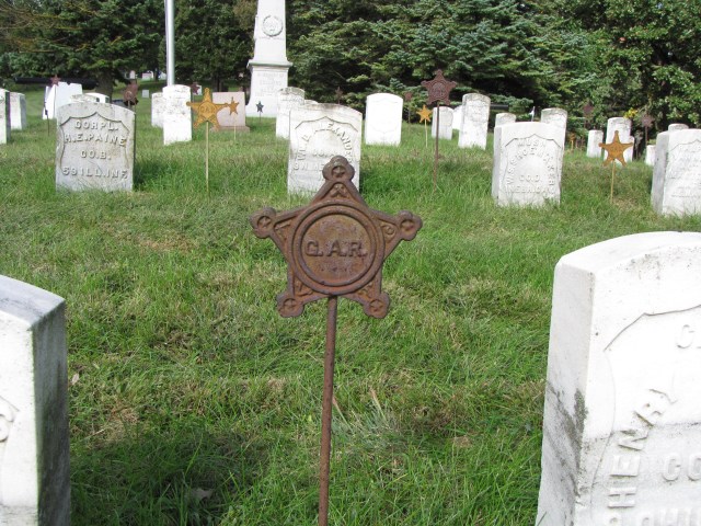 I have seen and may have a photo of five-pointed star with the word “veteran” in the center. I’ll see if i can find it. The metal marker is for a Union veteran of the Civil War.