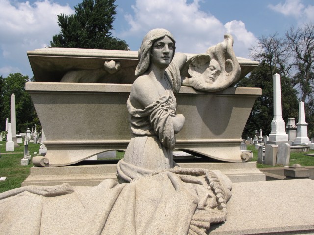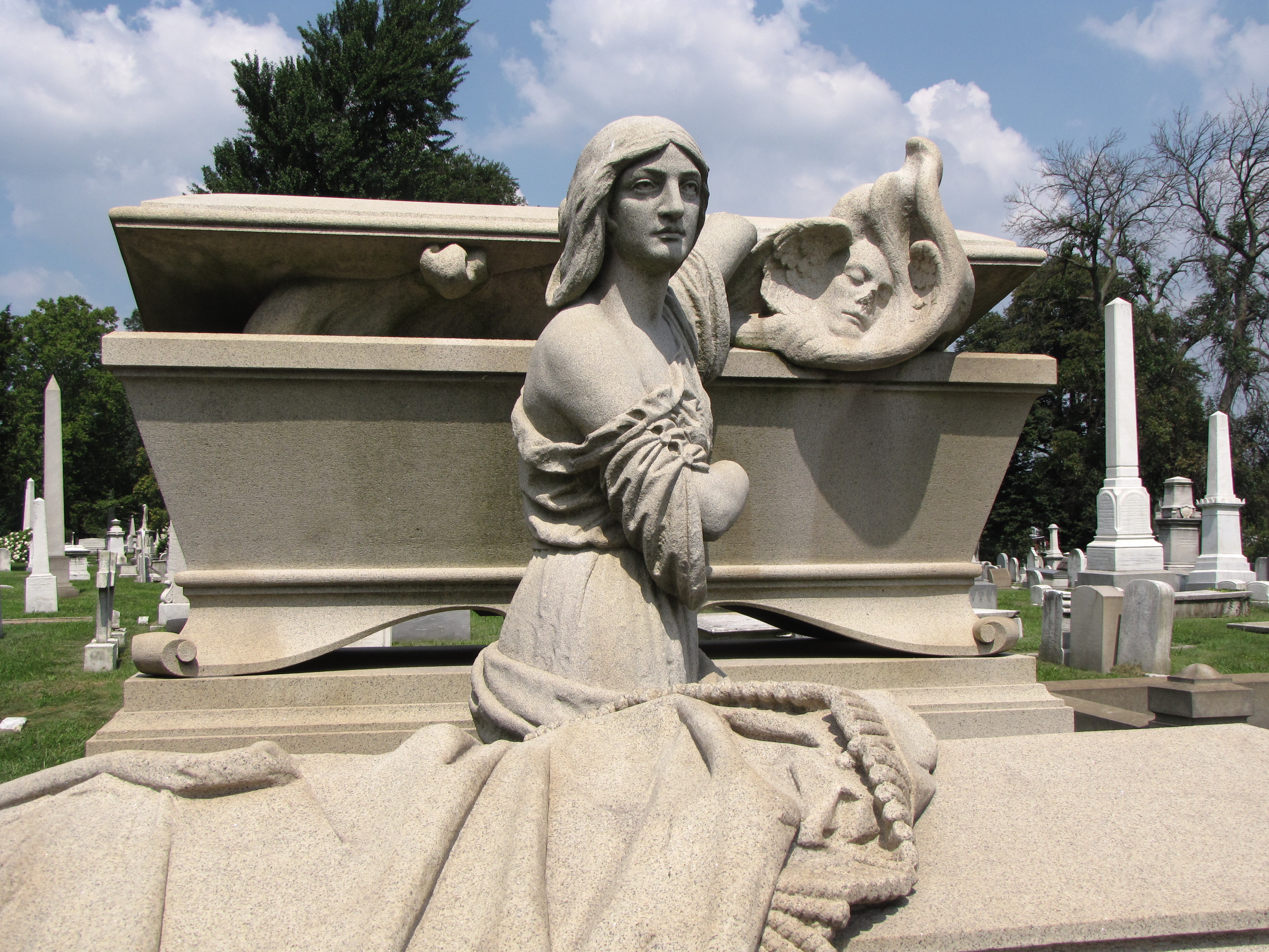 Calder, like many great artists, earned money from commissioned works including the William Warner Monument, a Victorian masterpiece of funerary art in the Laurel Hill Cemetery in Philadelphia. The female figure gazes into the distance, stoic and unemotional, as she lifts the lid of the coffin releasing billowing clouds that portray a visible face, presumably Warner’s. The visage swirls upward, with what appears to be faint wings amid the wisps, and is said to be of his soul being released from the grave to Heaven.