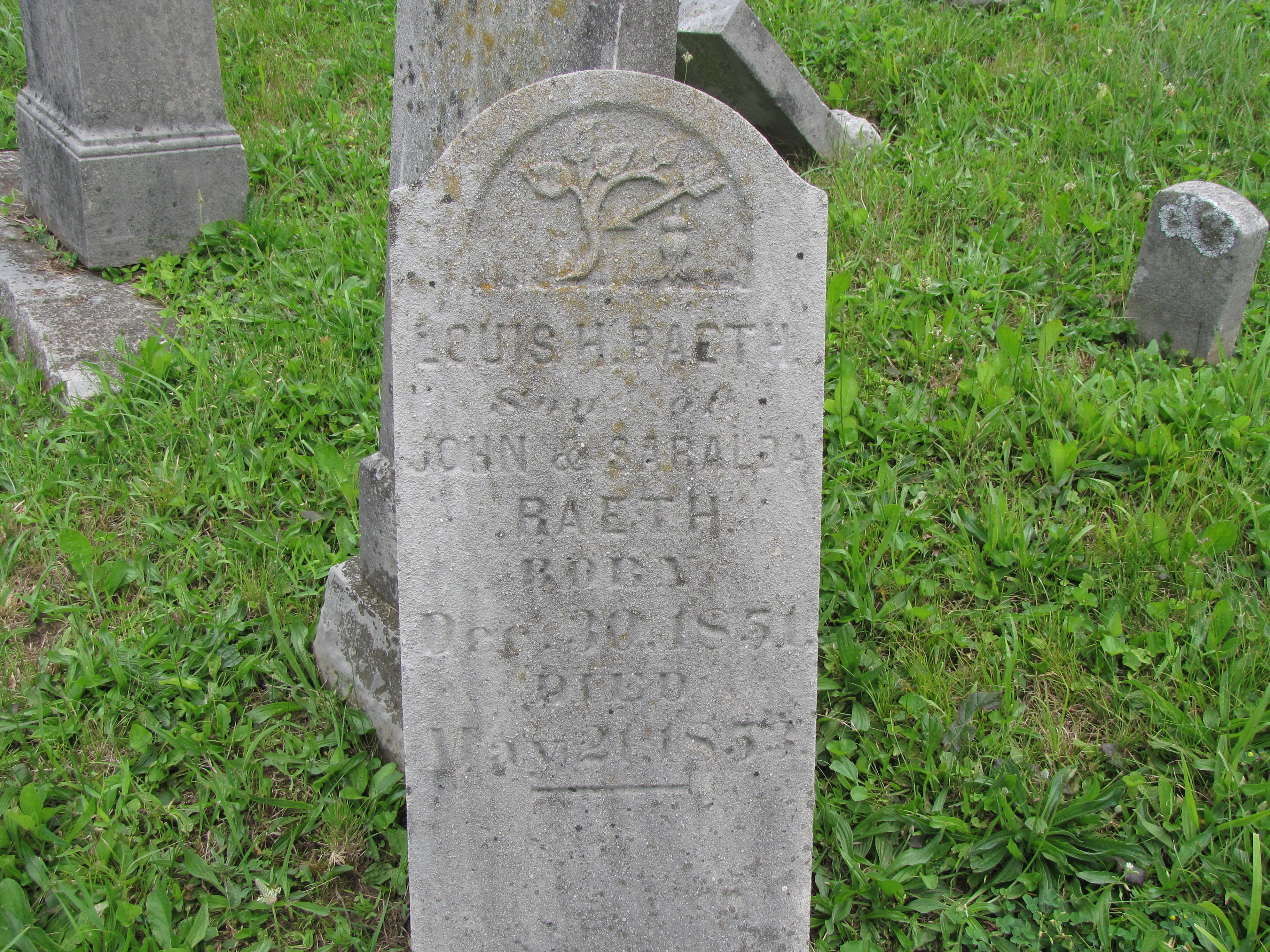 LOUIS H. RAETH son of JOHN & SARALDA RAETH BORN Dec. 30, 1851 DIED May 21, 1853
