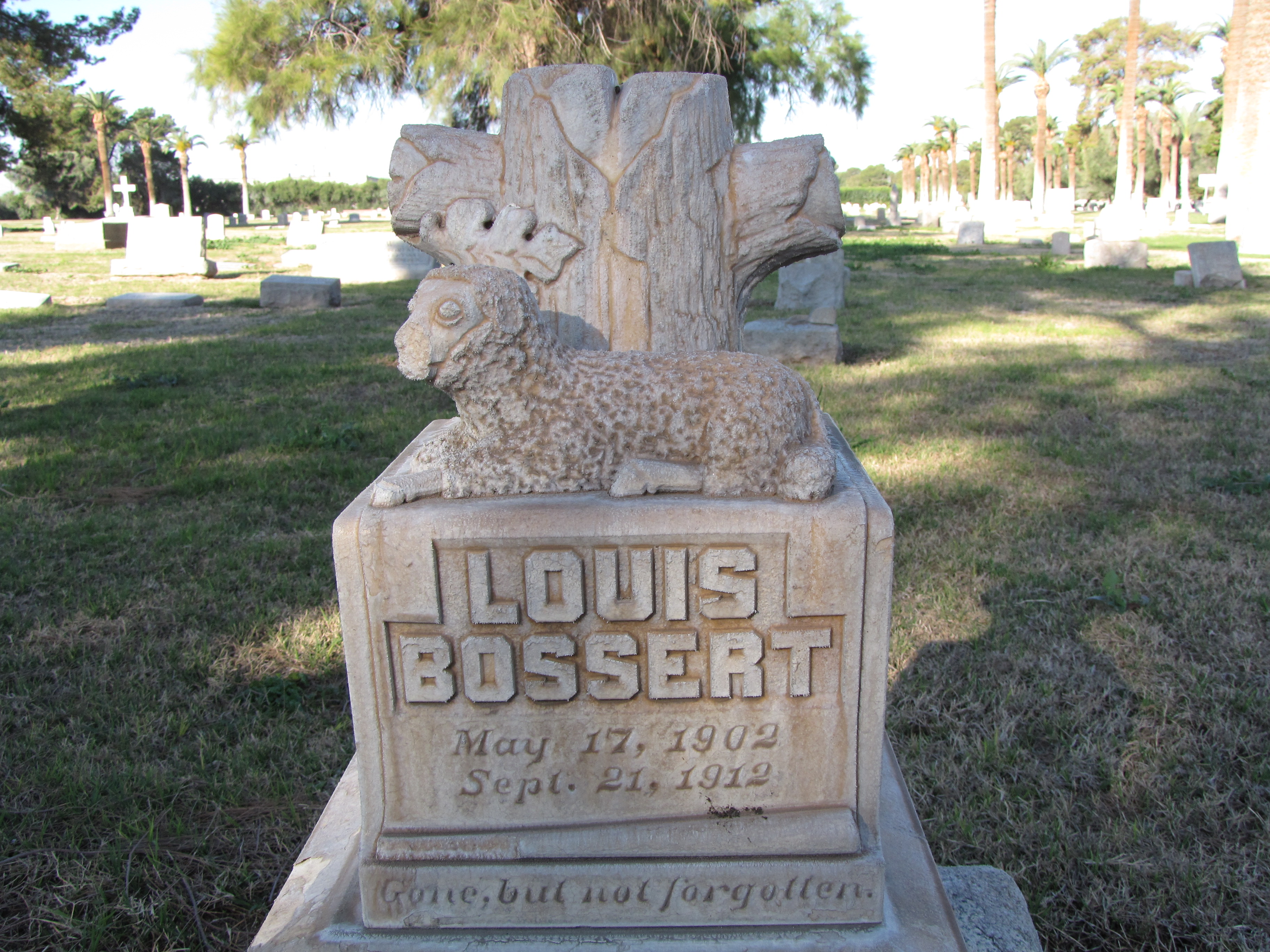 The lamb is the symbol of the Lord, the Good Shepherd. It also represents innocence, likely the reason why this motif usually adorns the tombstones of infants and young children. Most often the lamb is lying down, often asleep and sometimes with a cross behind the lamb.