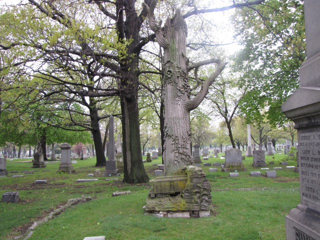 Some people want to be remembered for who they are, some for what they did.  This “treestump gravestone”, so called because it looks like a treestump is the monument of George S. Bangs.  If you look closely you can see a rail car entering into a tunnel at the base of the treestump.  On the side of the rail car were the words, “UNITED STATES RAILWAY POST OFFICE.”