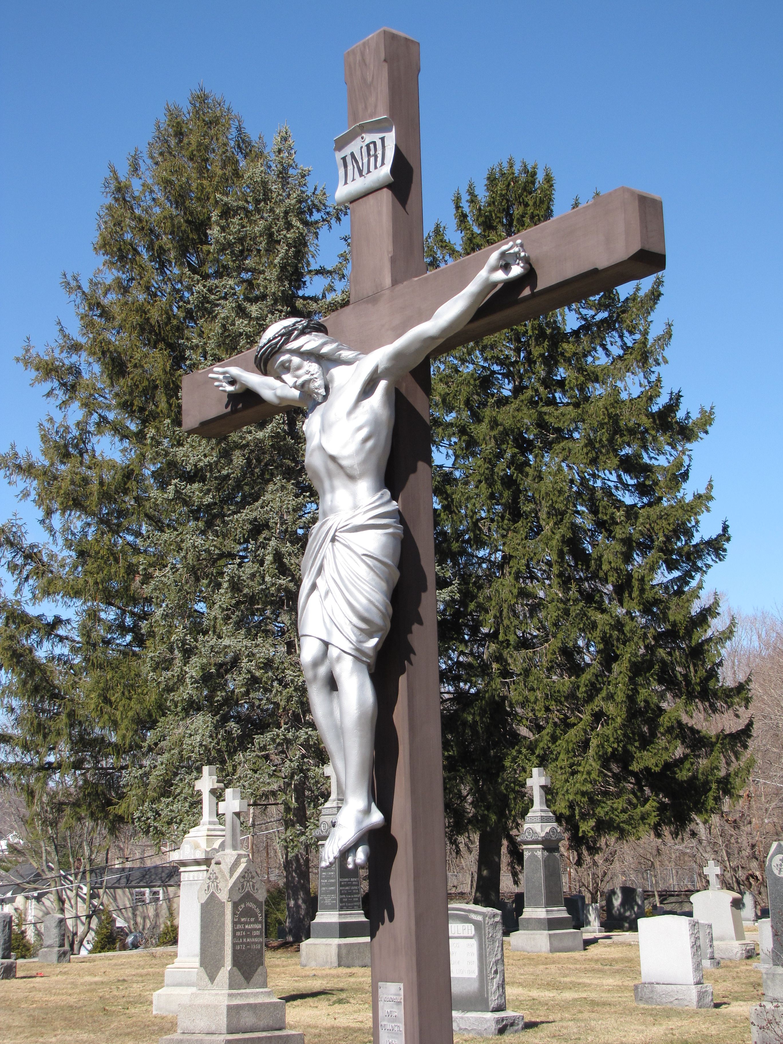 The crucifixion is the most important symbol in Christianity, ususally found in Catholic cemeteries.