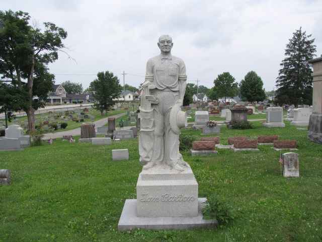 Others want to be remembered for their love of the game, such as Thomas Almon Barton (May 5, 1886–Oct. 2, 1937). His remarkable granite monument in the Green Hill Cemetery, in Bedford, Indiana, is a full-sized statue in the round of Tom holding his straw hat in one hand and clutching his golf bag in the other. He is also decked out in glasses and a bow tie, sleeves rolled up, as if he is ready to head out to the links!
