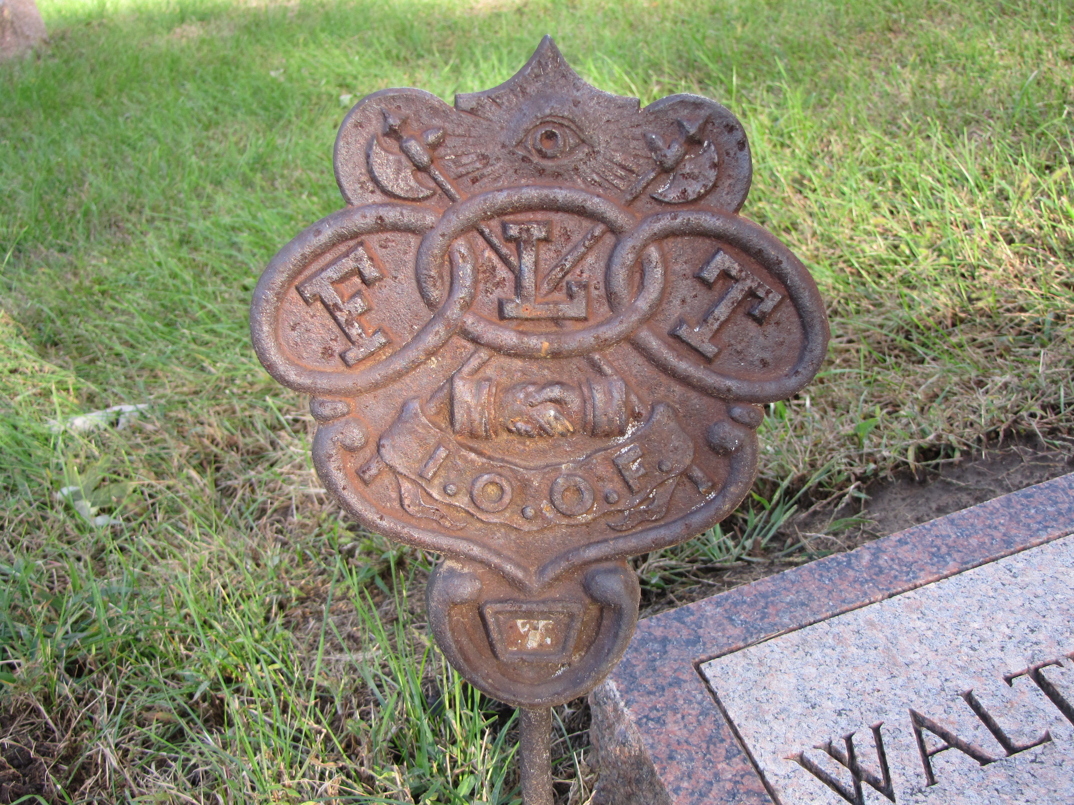 The metal marker above when seen next to a gravestone denotes that the deceased was a member of the fraternal organization of Independent Order of Odd Fellows.  Odd Fellows is an fraternal organization that formed in England in the 1700s as a service organization.  The American association was founded in Baltimore, Maryland, on April 26, 1819.  According to the I.O.O.F. Website, “Thomas Wildey and four members of the Order from England instituted Washington Lodge No. 1.  This lodge received its charter from Manchester Unity of Odd Fellows in England.”