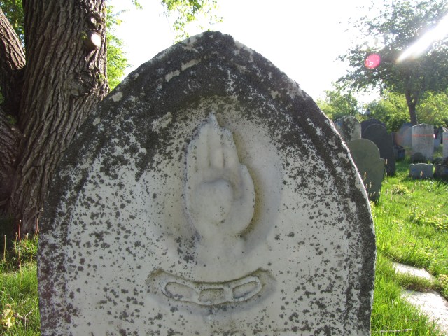 Even though, the marble gravestone in the photographs has eroded, the Heart-in-Hand symbol can still be seen. The heart rests in the center of the palm, directly over the three linked rings. The three linked rings, the most recognizable Odd Fellows motif, symbolizes how much better communities, states, and the country works when working together. The Heart-in-Hand symbol represents charity given with an open heart.