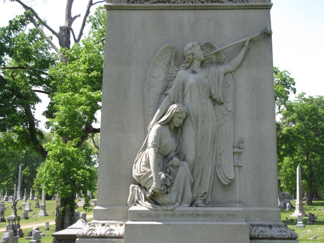 On the monument below, the angels is blowing the trumpet, announcing the Day of Judgment and the Call to Resurrection.