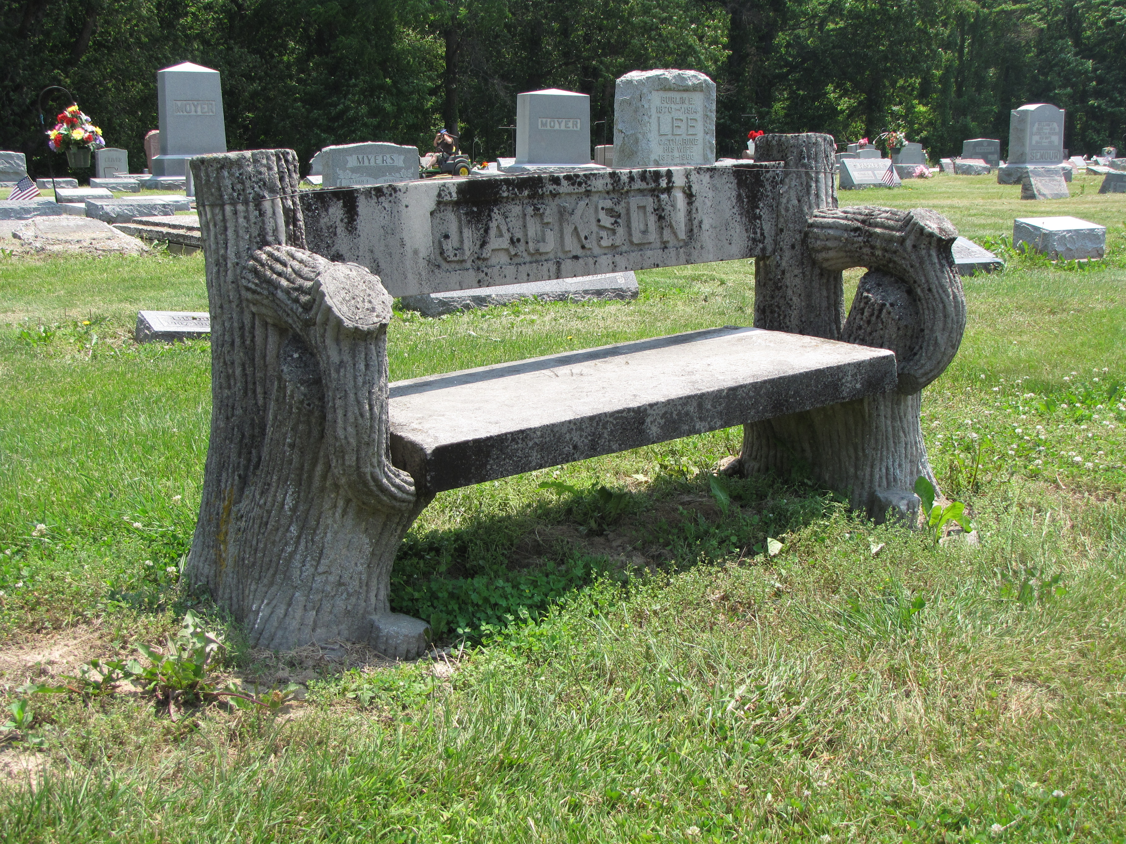In funerary art, tombstones took on the look of tree stumps. The gravestones were purposefully designed to look like trees that had been cut and left in the cemetery to mark a grave. Most of these tree-stump tombstones were carved from limestone, which is easier to carve, though some are made from marble and even a few from granite. Often, the gravestones were carved to look like rustic furniture. Benches and chairs can be found in many cemeteries. The creativity of the carvers were boundless. Thousands of tree-stump tombstones exist in nearly as many designs.