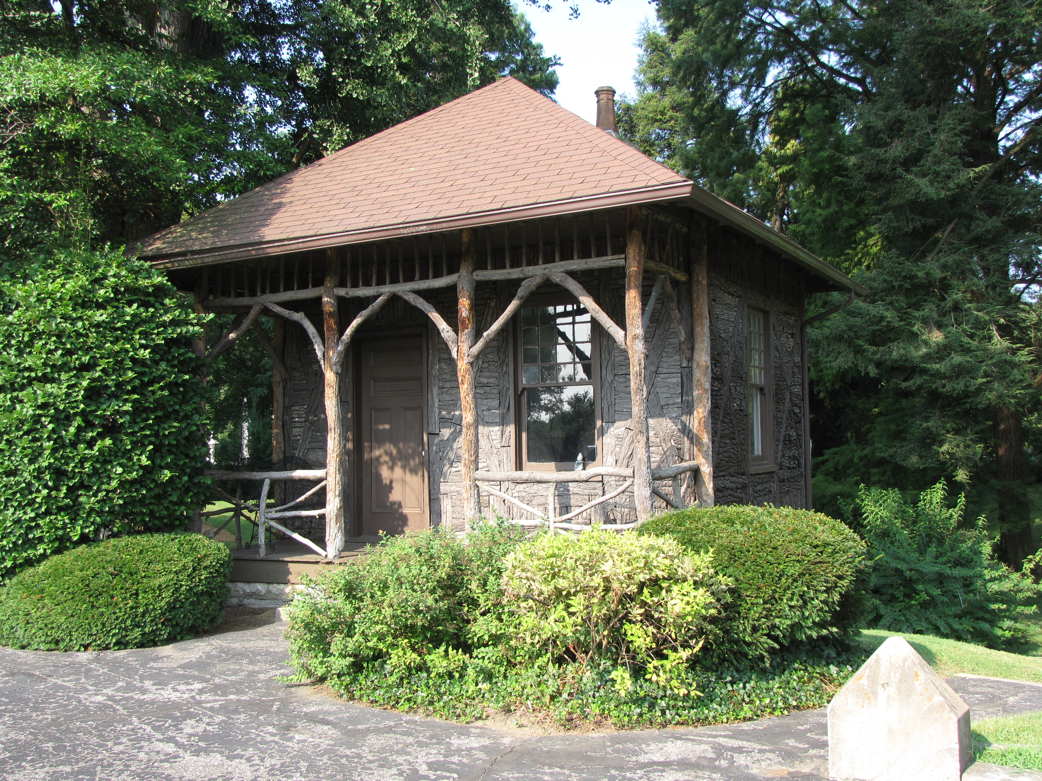The rustic movement coincided with the rural cemetery movement. The rural cemeteries were often located on the outskirts of town and laid out as a park would be—with broad avenues and winding pathways, featuring picturesque landscaping such as ponds, abundant trees, and shrubs. The tree-stump tombstones were a funerary art contrivance mimicking the natural surroundings of the cemetery. The tree-stump tombstones were most popular for a twenty year-period from about 1885 until about 1905.