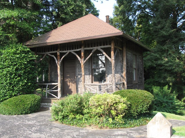 The rustic movement of the mid-nineteenth century was characterized by designs that were made to look like they were from the country. Elegant and slim curved lines in furniture gave way to bulkier and heavier forms made from pieces that came directly from the trees often with the bark still intact. Homes, cabins, and garden houses were designed in the rustic style eschewing classic designs. In decorative furniture this often took the form of chairs made from rough tree limbs curved to form arms and chair backs, chair legs made from tree roots growing upwards. In cabins, railings and the siding were made from unhewn logs with the bark still in place.