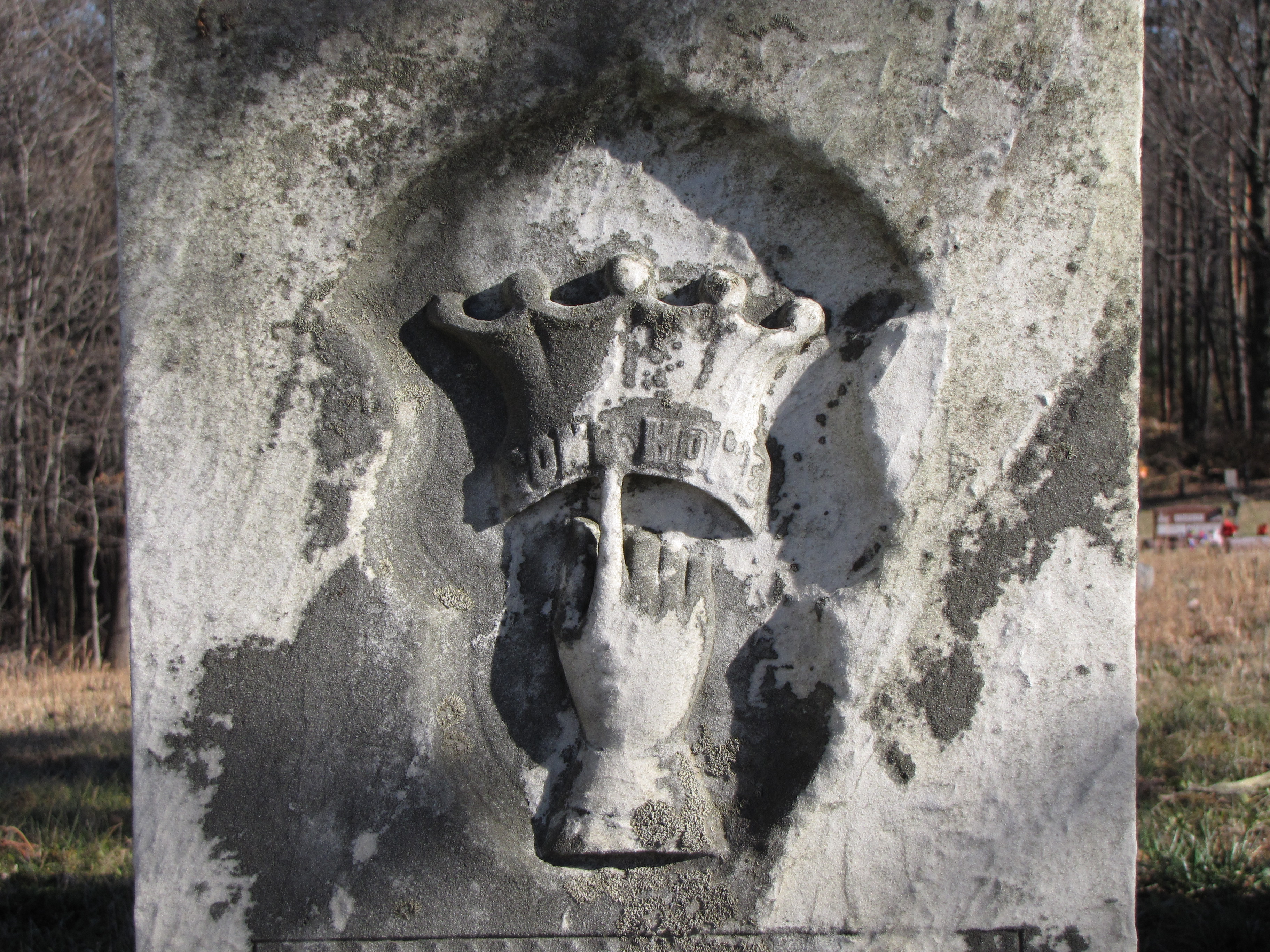 The image above of the finger pointing upward is coupled with a crown that has the words, GONE HOME, on the base. The crown symbolizes victory. Most likely the combination of the images represent the flight of the soul from the earthly realm to the Heavenly realm. “Gone Home” is an often used euphemism for Heaven. In this case an indication that the soul received its “crown” in Heaven.