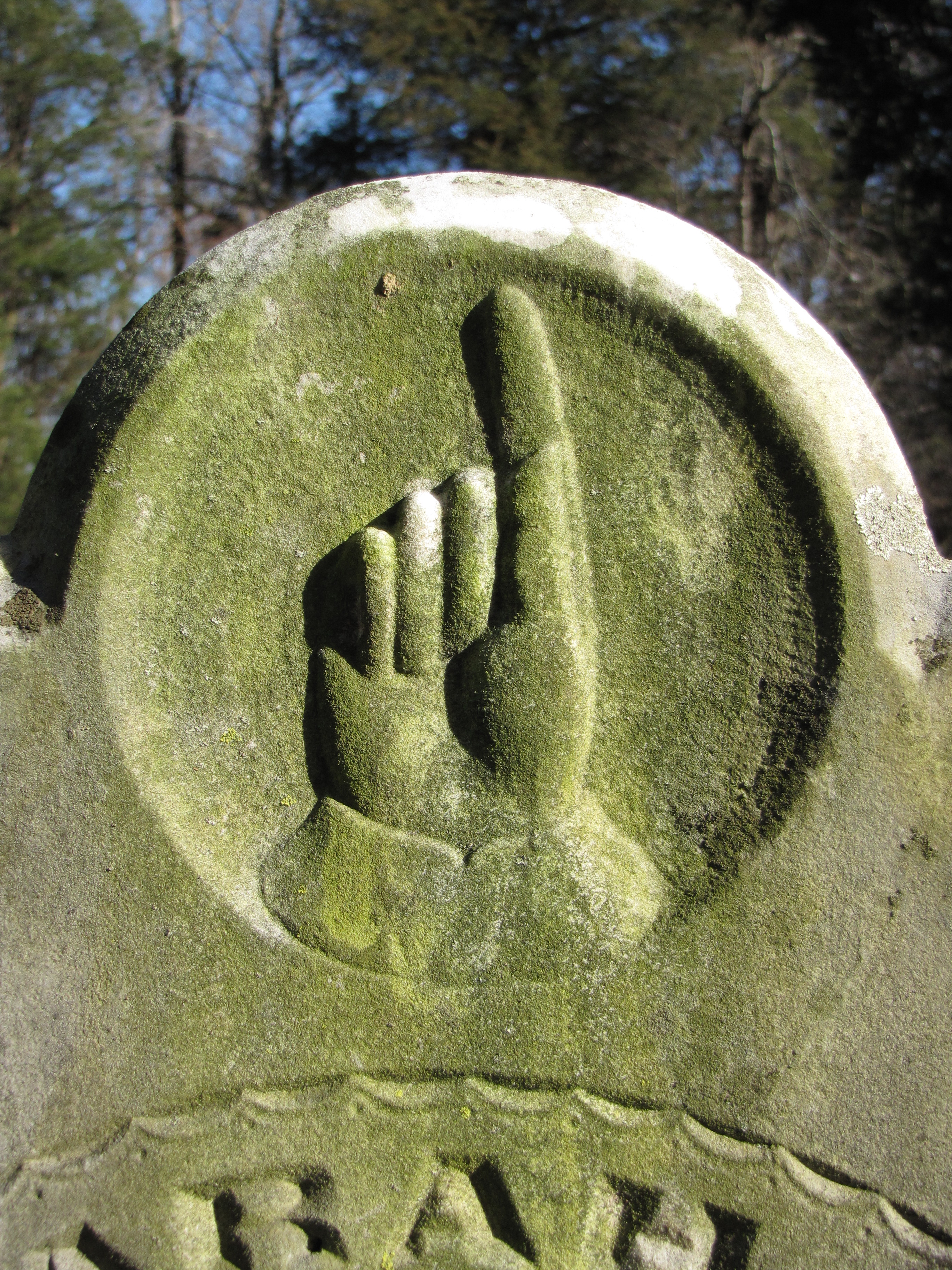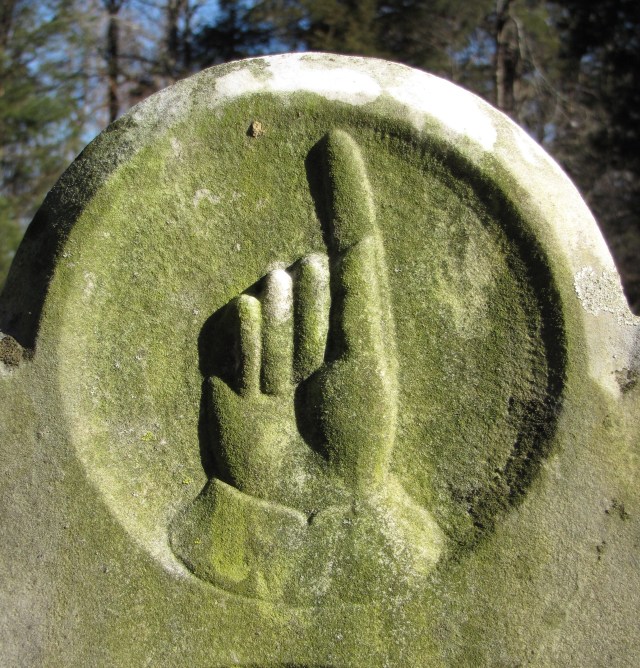 The finger pointing upward, indicates the soul traveling to Heaven, sometimes a presumptious claim, though hopeful.