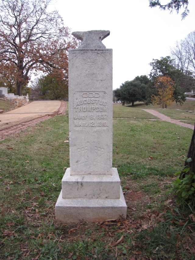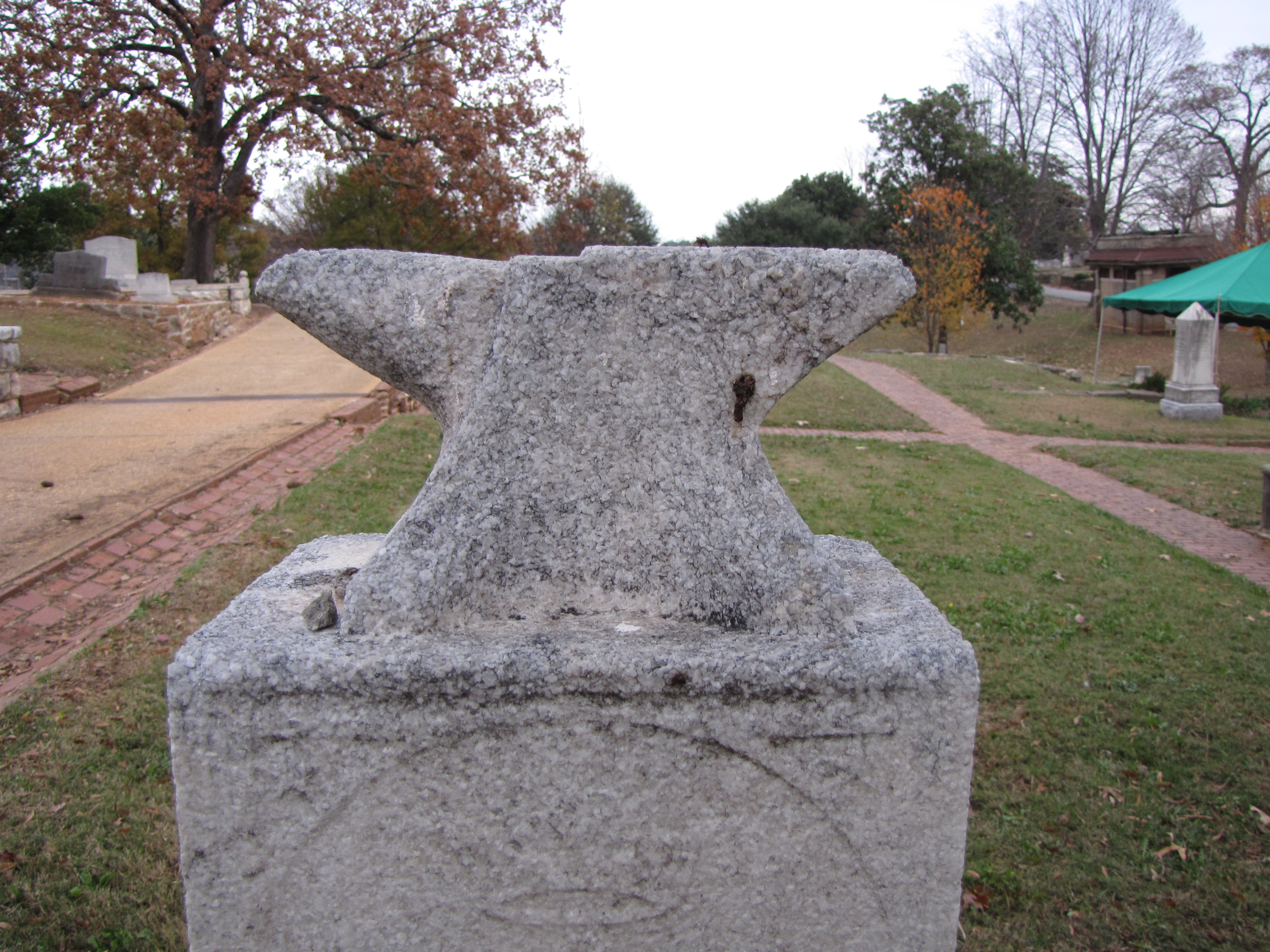 The anvil gravestone pictured above is in what is historically been called the Black Section of the Oakland Cemetery, Atlanta, Georgia. The monument commemorates the grave of Augustus Thompson (1837-1910) a prominent citizen of the city. Thompson moved from Mississippi, out of slavery, to settle in Atlanta to work as a blacksmith, hence, the anvil atop of the gravestone.