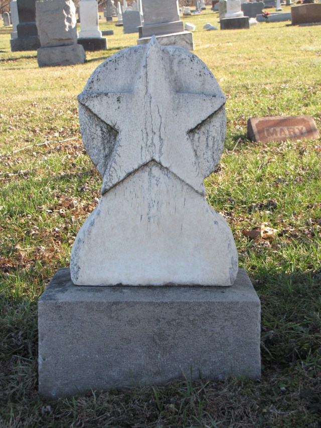 The gravestone above from the Presbyterian Cemetery in Ellettsville is a star design in the round. From any direction, the star design stands out.
