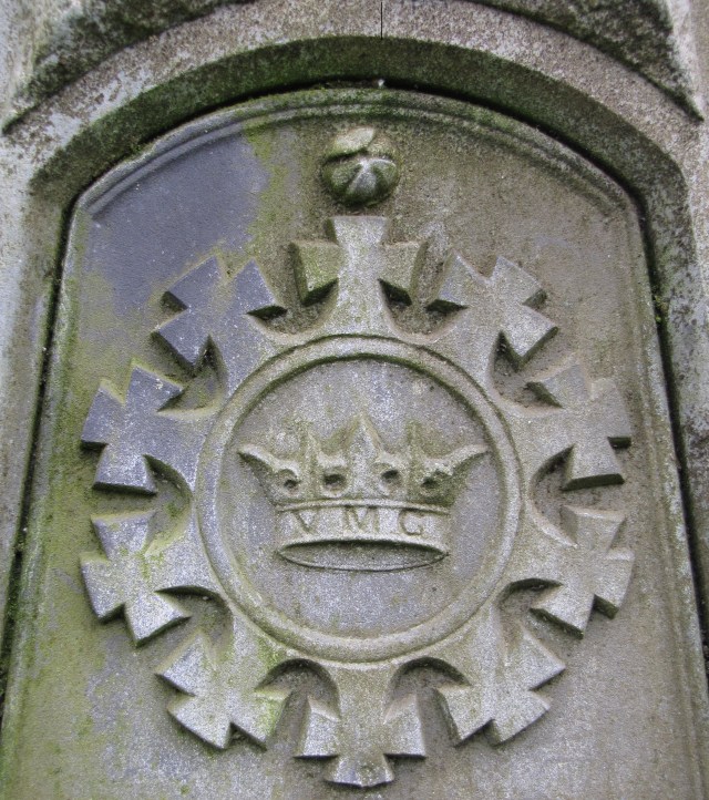 The crown with the initials V. M C. is a symbol representing the Supreme Council of the Royal Arcanum, a membership organization founded by John A. Cummings and Dr. Darius Wilson in Boston on June 23, 1877. The State of Massachusetts granted the society a charter on November 5th of that year.