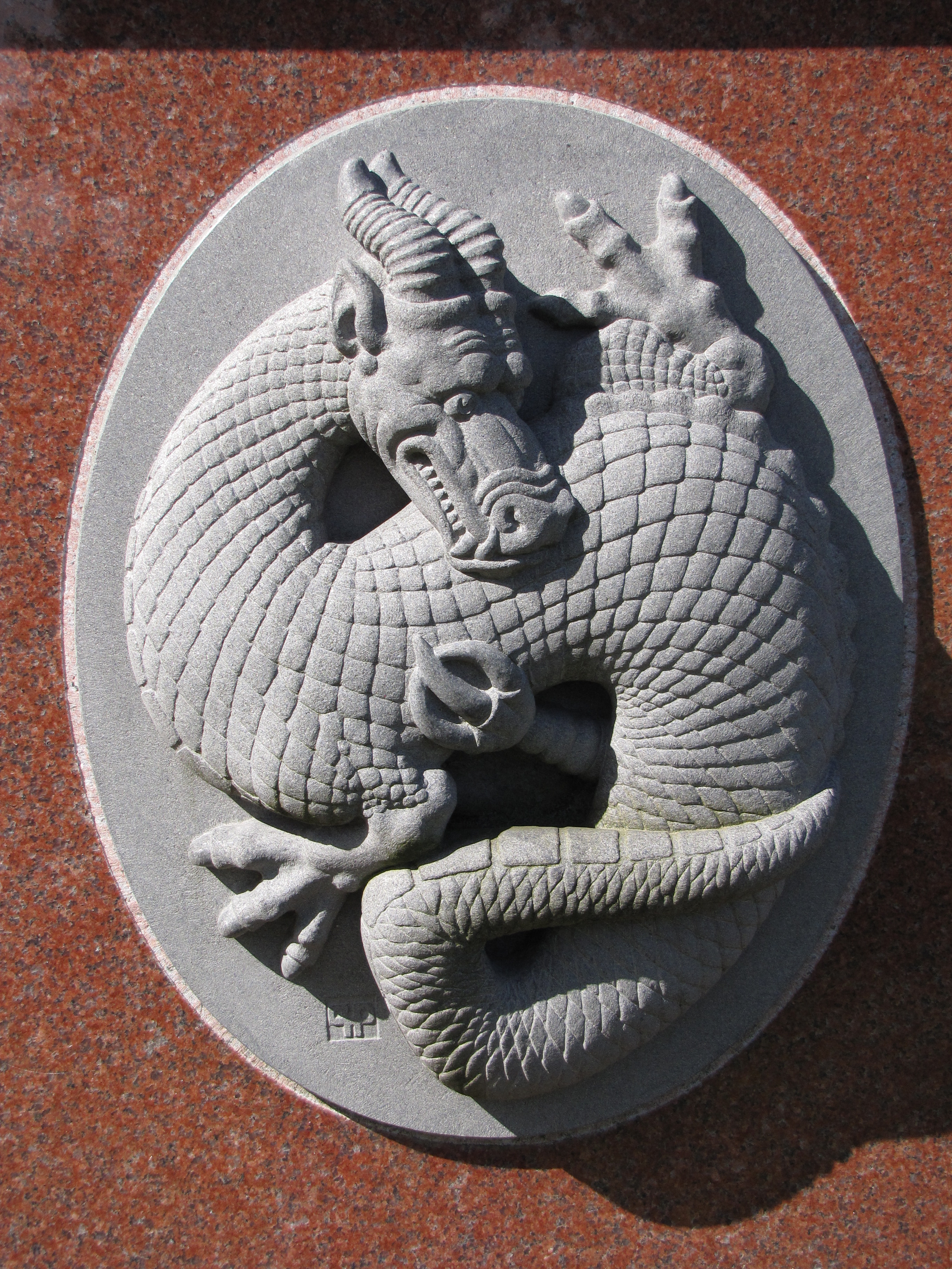The intricately carved dragon in the photo above is found on the gravestone of an Asian family, which suggests that it represents, in this case, the dragon as a symbol of goodness.