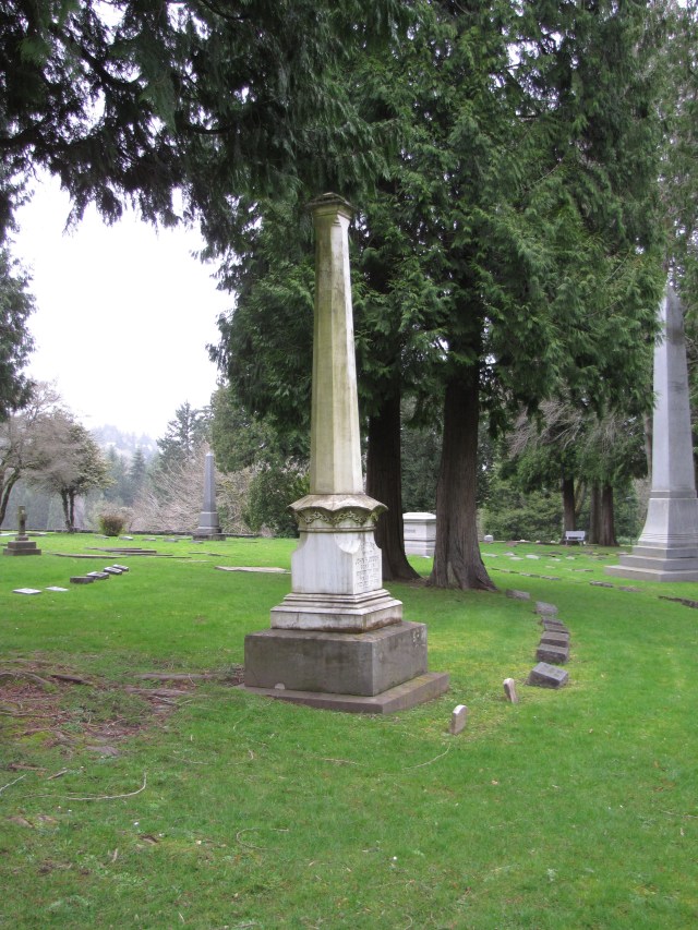 The gravestone below has a broken chain that wraps around the pedestal base of the column. Like much of the funerary art, the broken link of a chain, too, represents the life that was ended.