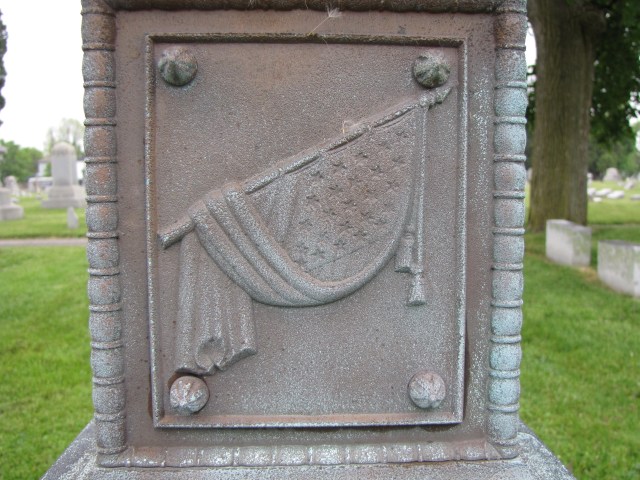 • I hope you will take a look at my latest post–I think this is the gravestone you were referring to in your comment about the monument with the flag in the Grove Lawn Cemetery in Pendleton. As you rightly point out it is one of the finest examples of a gravestone displaying the American flag.