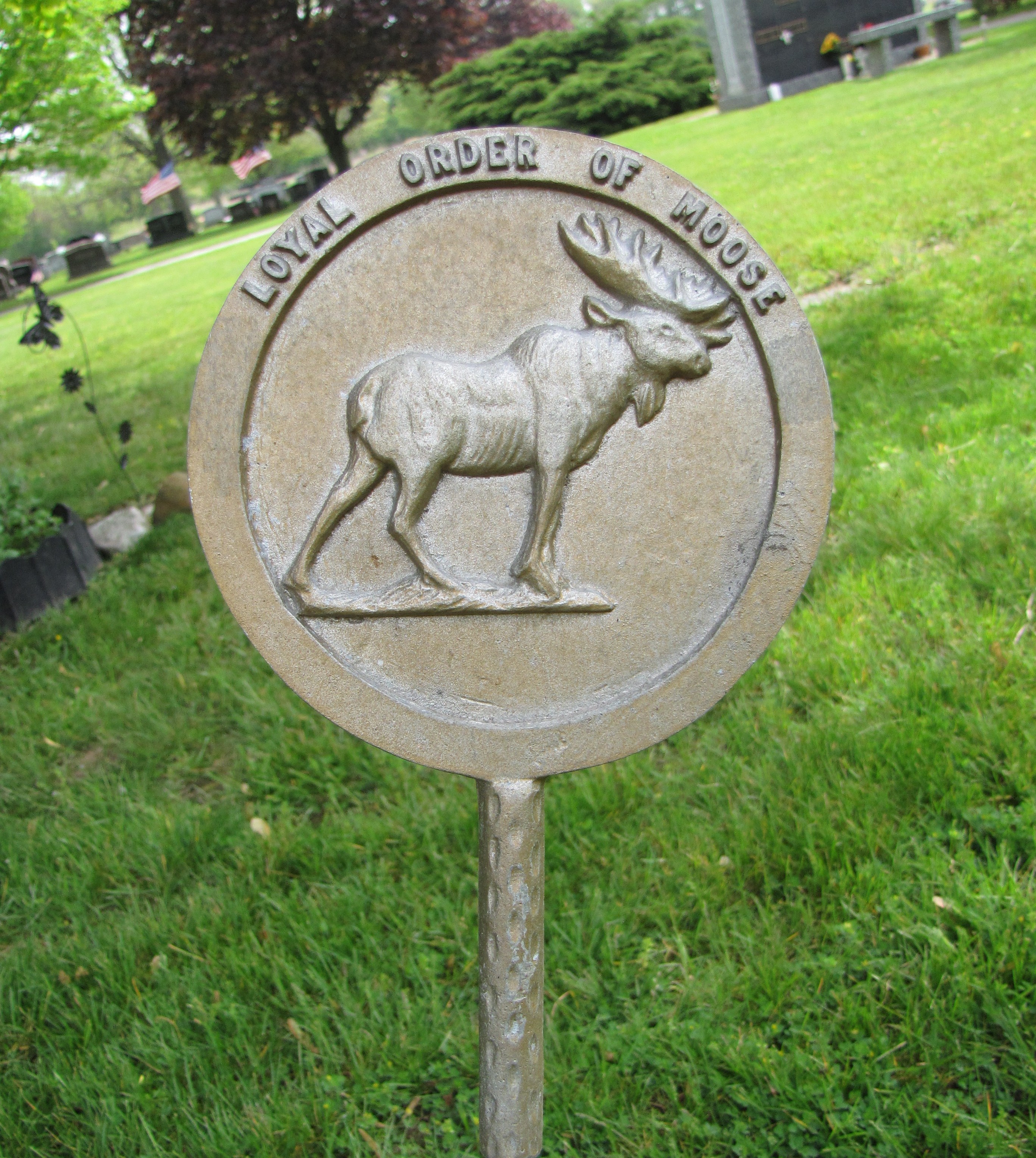 Most of the metal markers that designate that the deceased was a member of the Loyal Order of Moose only show a moose head, but this marker displays the entire moose!