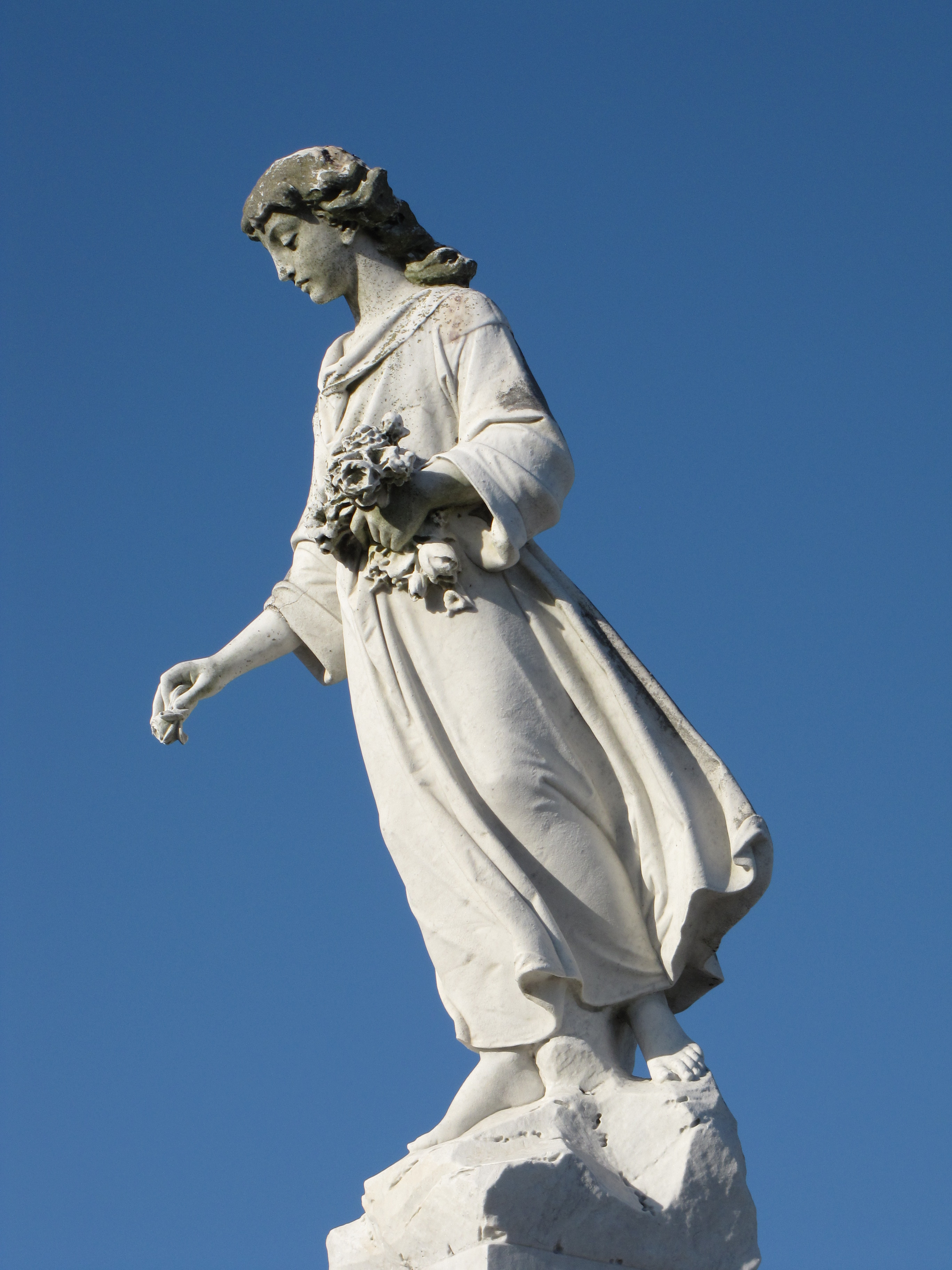 The sculpture of the young woman placing flowers on graves also recreates a tradition begun by the ancient Greeks and Romans that we practice to this day.