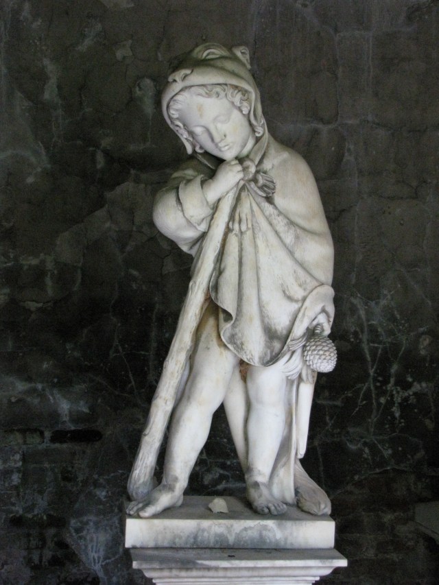 The austere outside of the tomb in no way prepares you for the statue that you will see if you peer through the iron grill-work door. Inside is a finely-carved marble statue, produced by German-born artist Emile Wolff, of the boy from the mythological tale of Hercules and the first of the twelve labors.