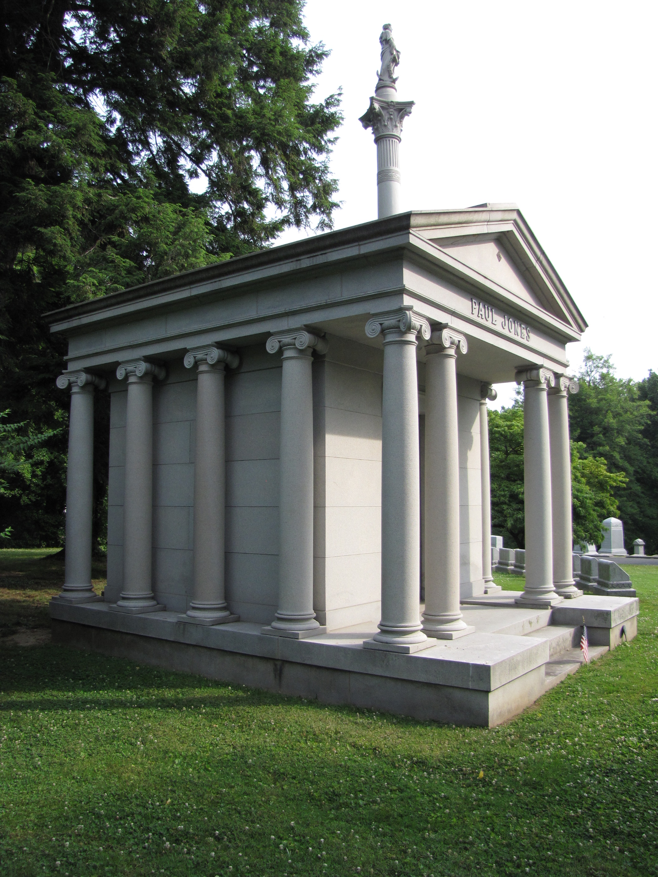 The classically designed mausoleum in the Cave Hill Cemetery at Louisville, Kentucky, was built for Paul Jones, a whiskey and tobacco distributor who left his native Atlanta when Georgia enacted prohibition laws. Jones picked up and moved to Louisville where he more than doubled his fortune. He was an innovative marketer and pioneered the use of lighted outdoor advertising signs. His innovations paid off. When Jones died in 1895 at the age of 54, he had expanded his business to include real estate and banking.