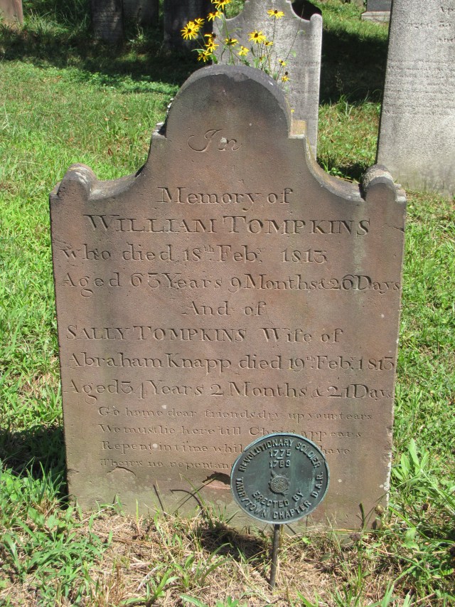 The red sandstone gravestone of William Tompkins and Sally Tompkins in the Old Dutch Burying Ground at Sleepy Hollow, New York, has an epitaph that is a stern message and a strong warning for those who are still alive: