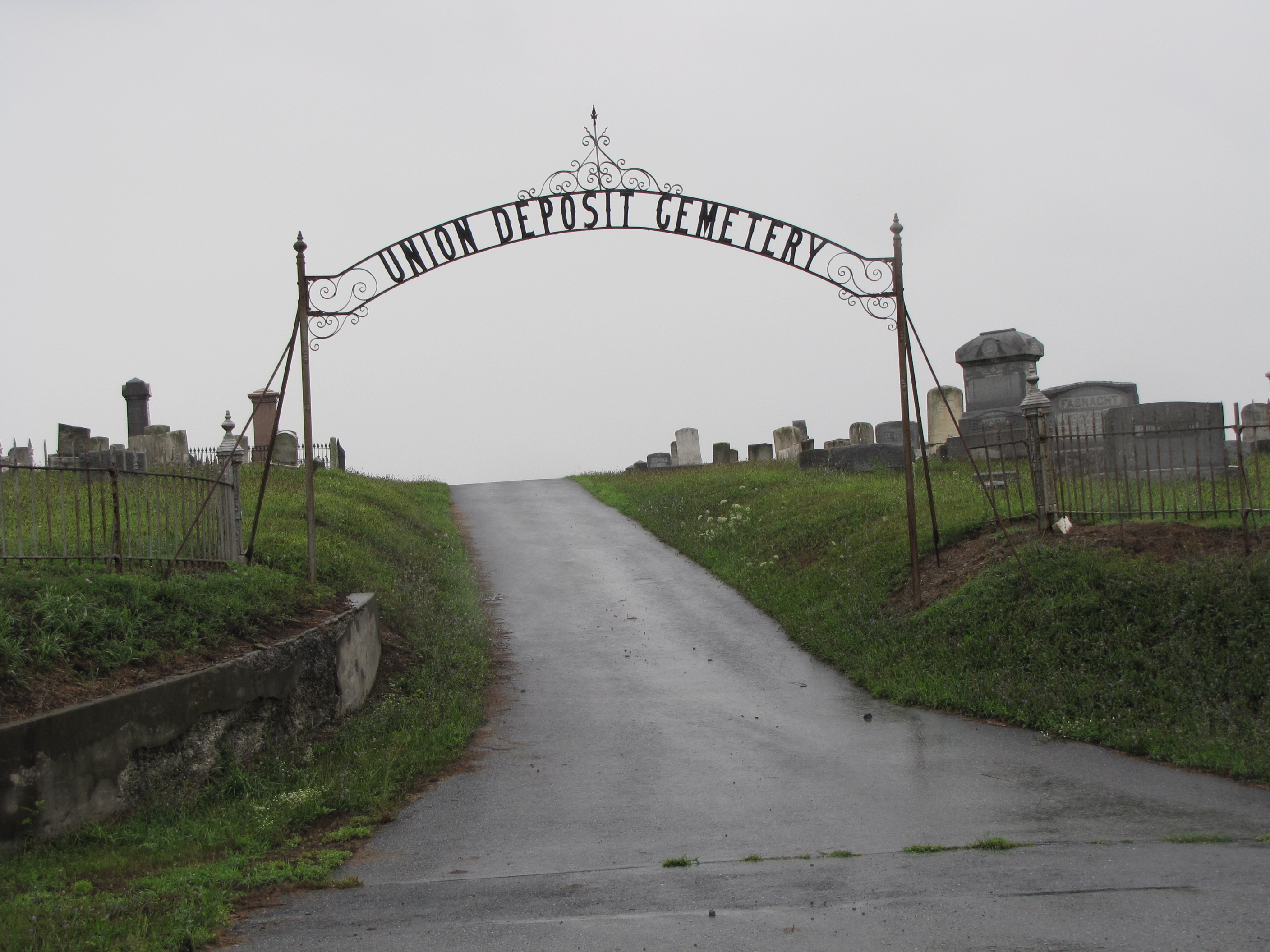 The cemetery gate in the photo is of a small cemetery in rural Pennsylvania, just outside Hershey. The gate is typical of many of the small cemetery gates that are made of iron rod and steel construction. What struck me was the name of the cemetery: Union Deposit Cemetery. Deposit? The name sounds a bit like a the name of a bank, though, the deposits are definitely different.