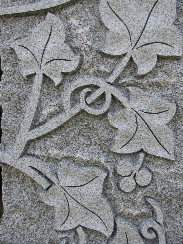 The Richard Perry Morrison Monument in the Forest Lawn Cemetery at Buffalo, New York, above is decorated with grape clusters and leaves. In Christianity the Eucharist, which is part of a religious ceremony also called Holy Communion, is a time when Christ’s followers are to do as Jesus instructed at the Last Supper. Jesus broke bread and said, “This is my body” and drank wine and said, “This is my blood”. The grape in cemetery symbolism represents the blood of Christ.