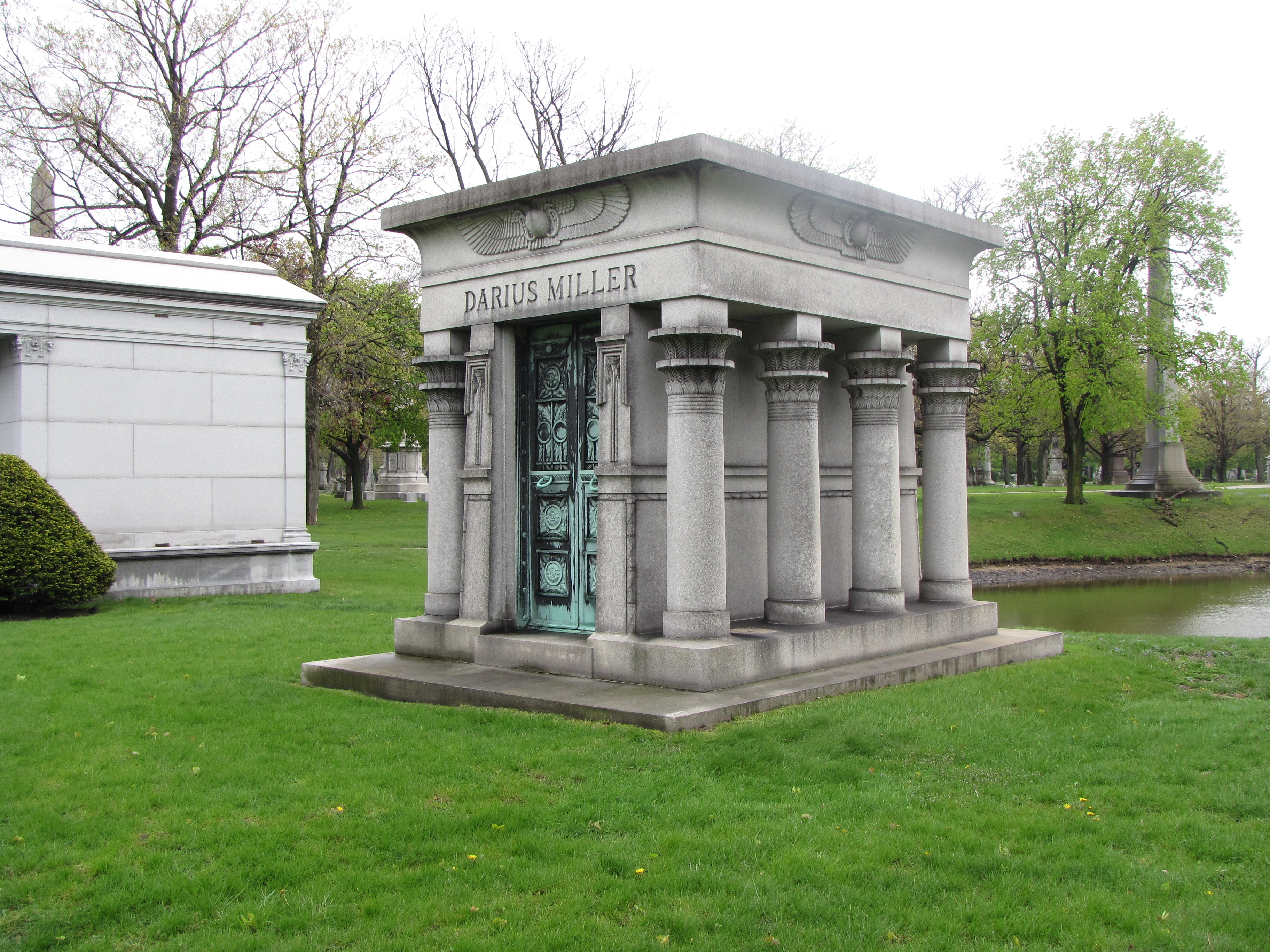 The story told on several Websites was that Darius Miller was fascinated with Egyptian art and architecture and that he supposedly had his tomb modeled after the Egyptian Temple of Anubis, the god of the underworld. Also, because of Miller’s Egyptian obsession, Darius Miller was at the historic opening of the King Tut Tomb in Egypt.