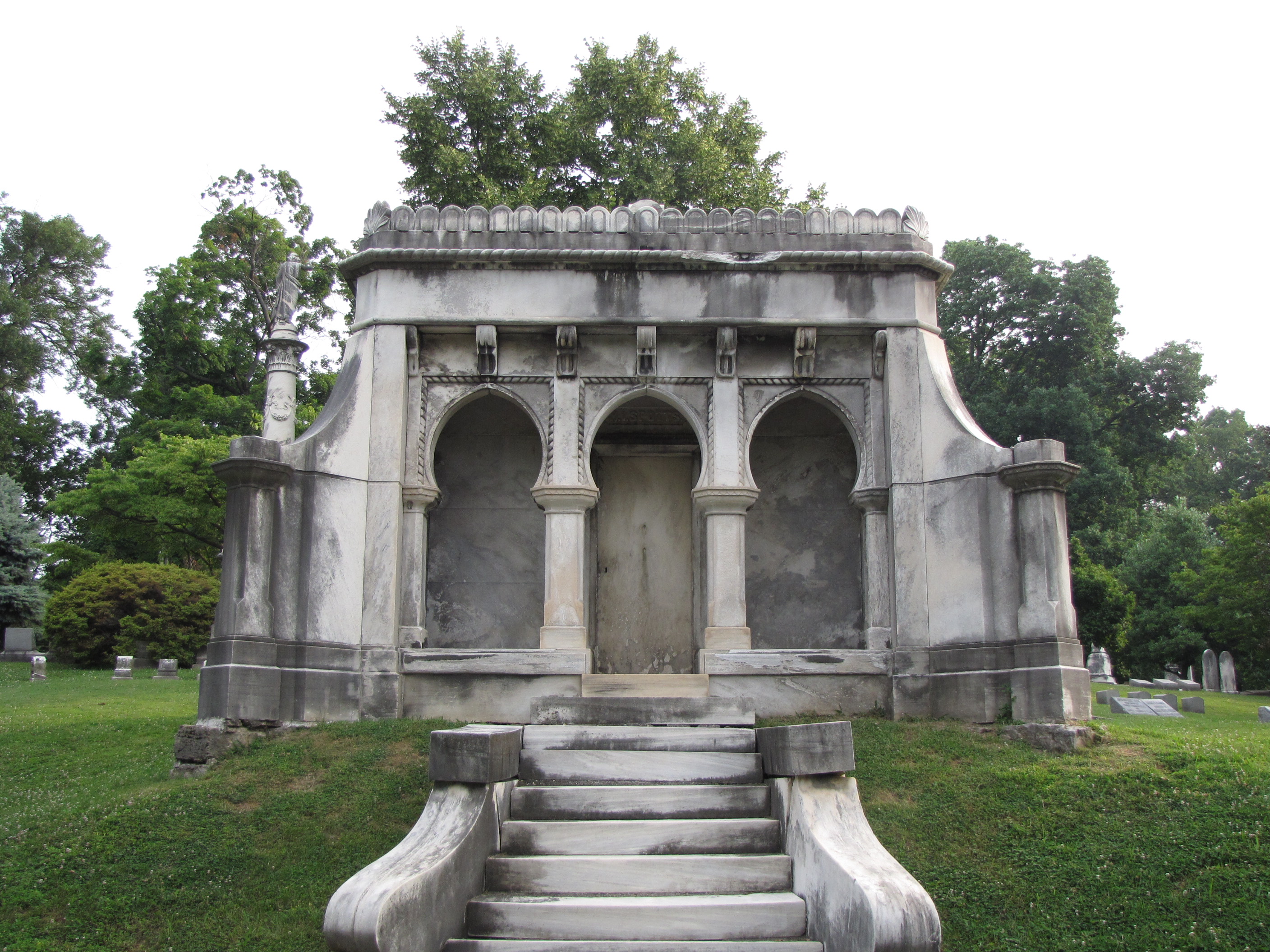 With the exception of the ornamentation on the top of the Spotts Mausoleum, two nearly identical mausoleums, one in the Cave Hill Cemetery at Louisville, Kentucky, and the other in the Mt. Olivet Cemetery at Nashville, Tennessee, were designed and built in the Venetian Gothic style.