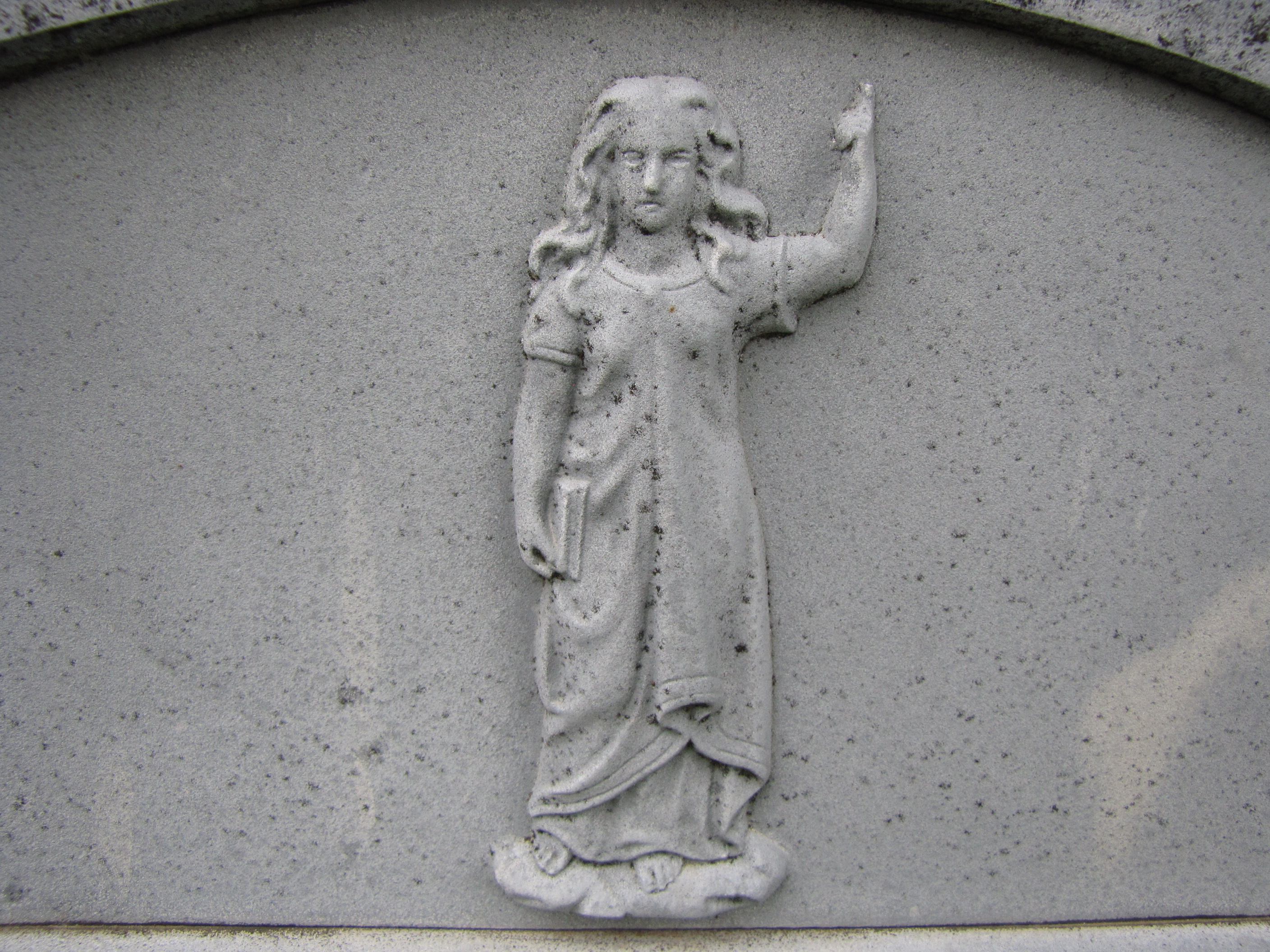Some popular symbols came in multiple forms. The symbol of the classically dressed woman holding a book in one hand and pointing to the Heavens with the other, for instance, could be ordered as a bas-relief facing upwards or straight ahead–left arm in the air or right–for display on a marker.