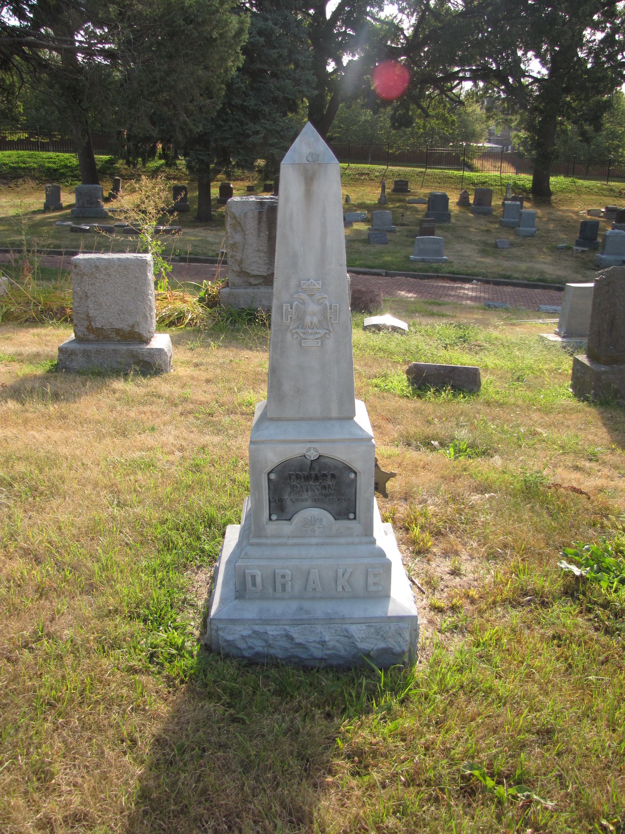 The example below is on the zinc obelisk marker of Edward Payson Drake, who was born May 1, 1856, and died February 20, 1943.
