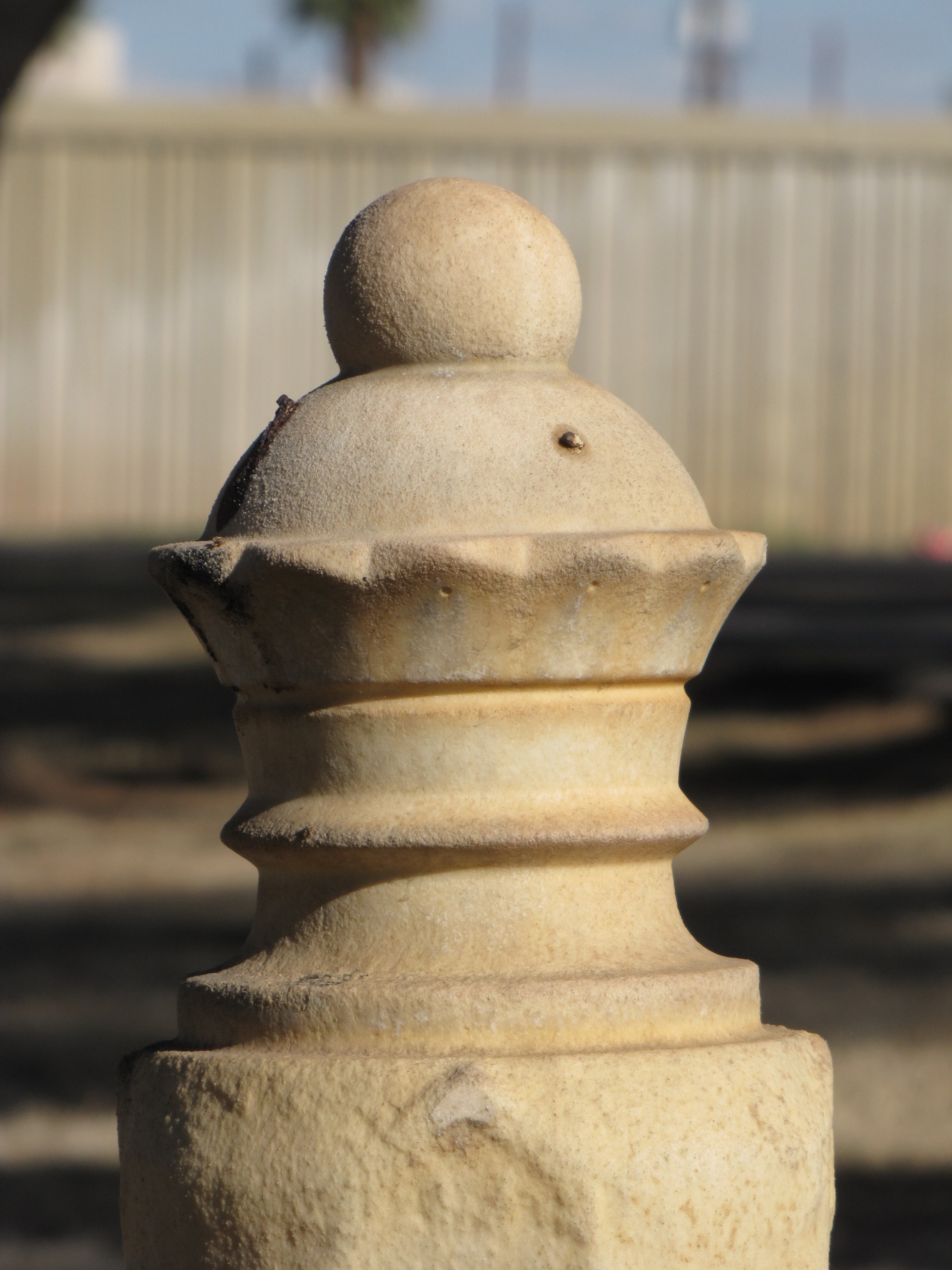 This weathered gravestone, however, in the Greenwood Cemetery at Phoenix, Arizona, has the crown built into the design of the stone, topping the square column.