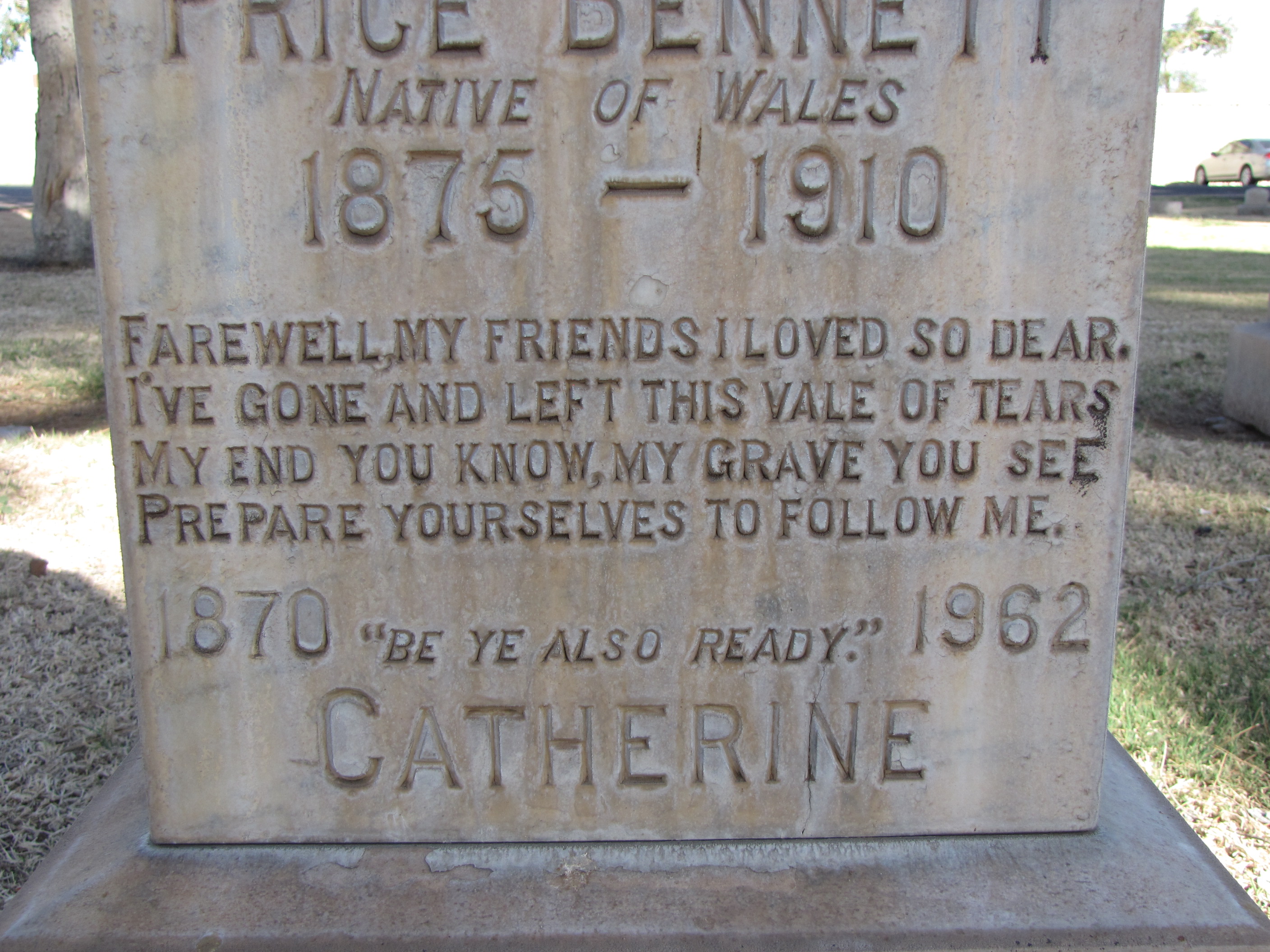 The epitaph on this gravestone from the Greenwood Cemetery at Phoenix, Arizona, sends the haunting message to remember death. It reminds us that life is short and at the end of that life everyone has the same destination–death.