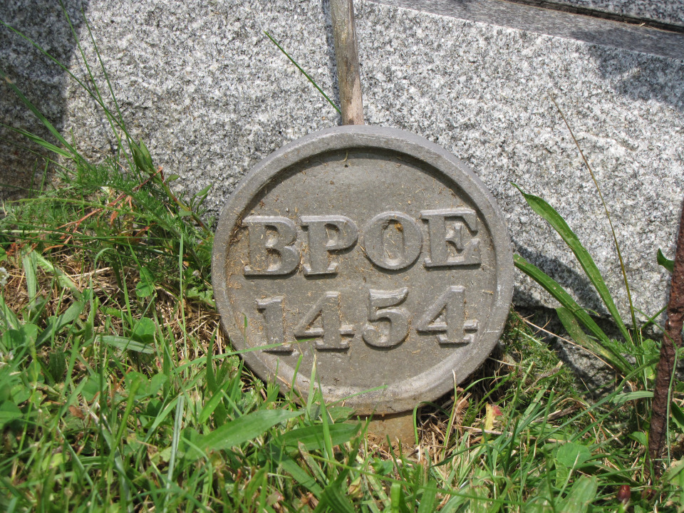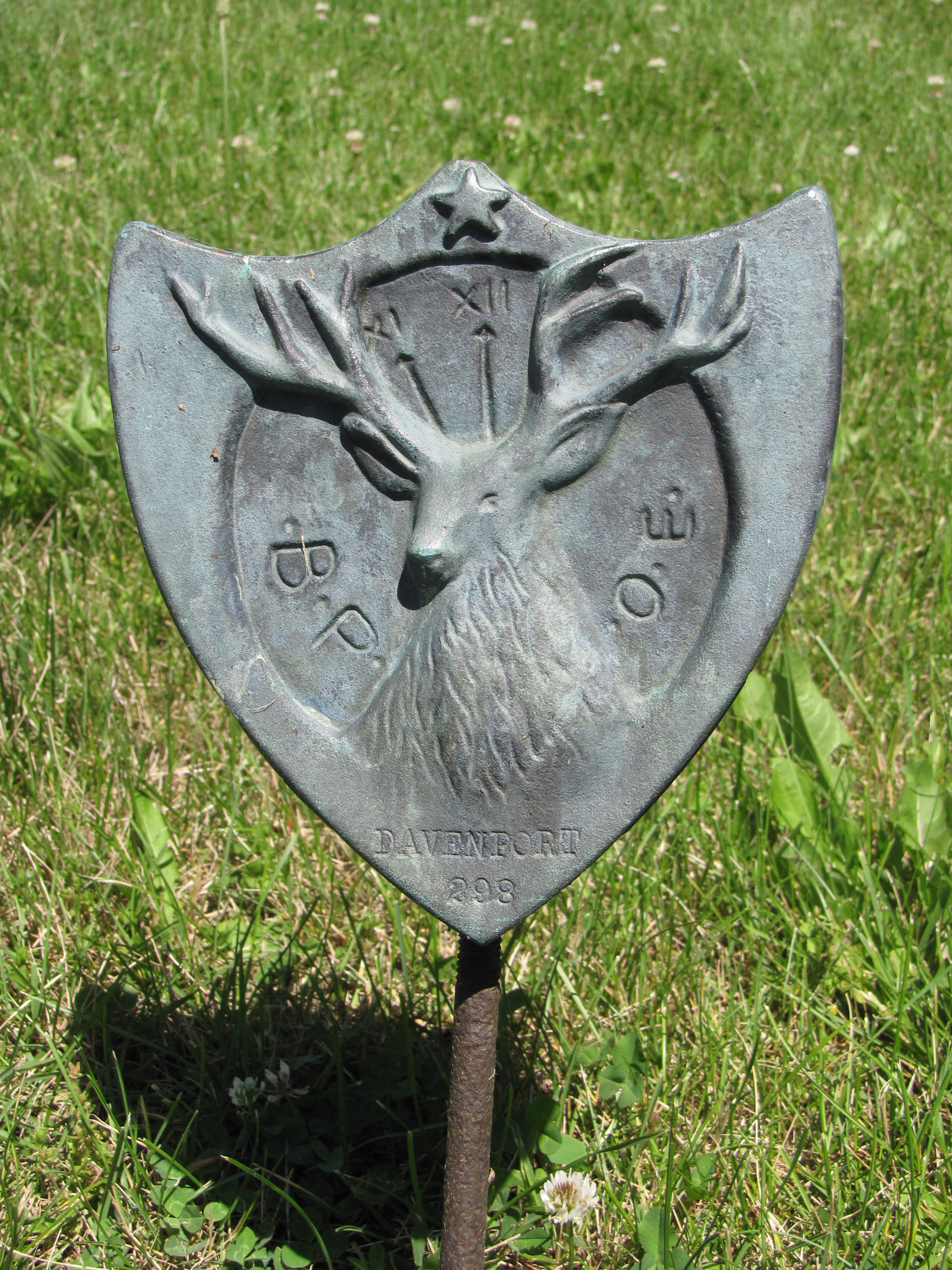 The metal marker above is similar in style, as it carries the elk and the clock and the lodge number, as opposed to the badge-like marker below, that only has the lodge number.