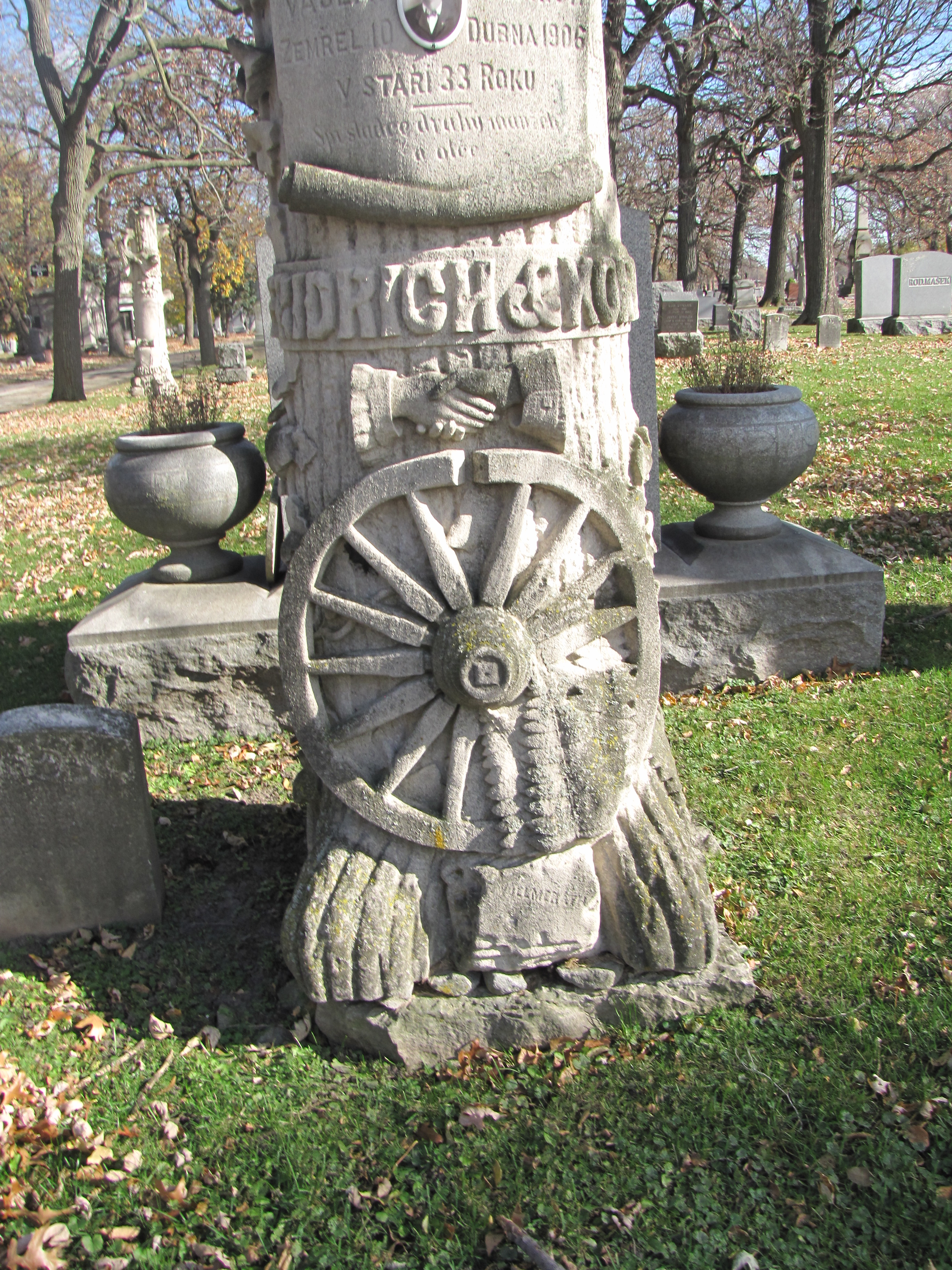 Wow what a surprise We went to the bohemian national cemetery today looking for my. Grandfathers grave. We found it ,took pictures and came home to look up the meaning of the tombstone. We found your link and to our amazement the pics above are of my grandfathers tombstone. Awsume. Thanks