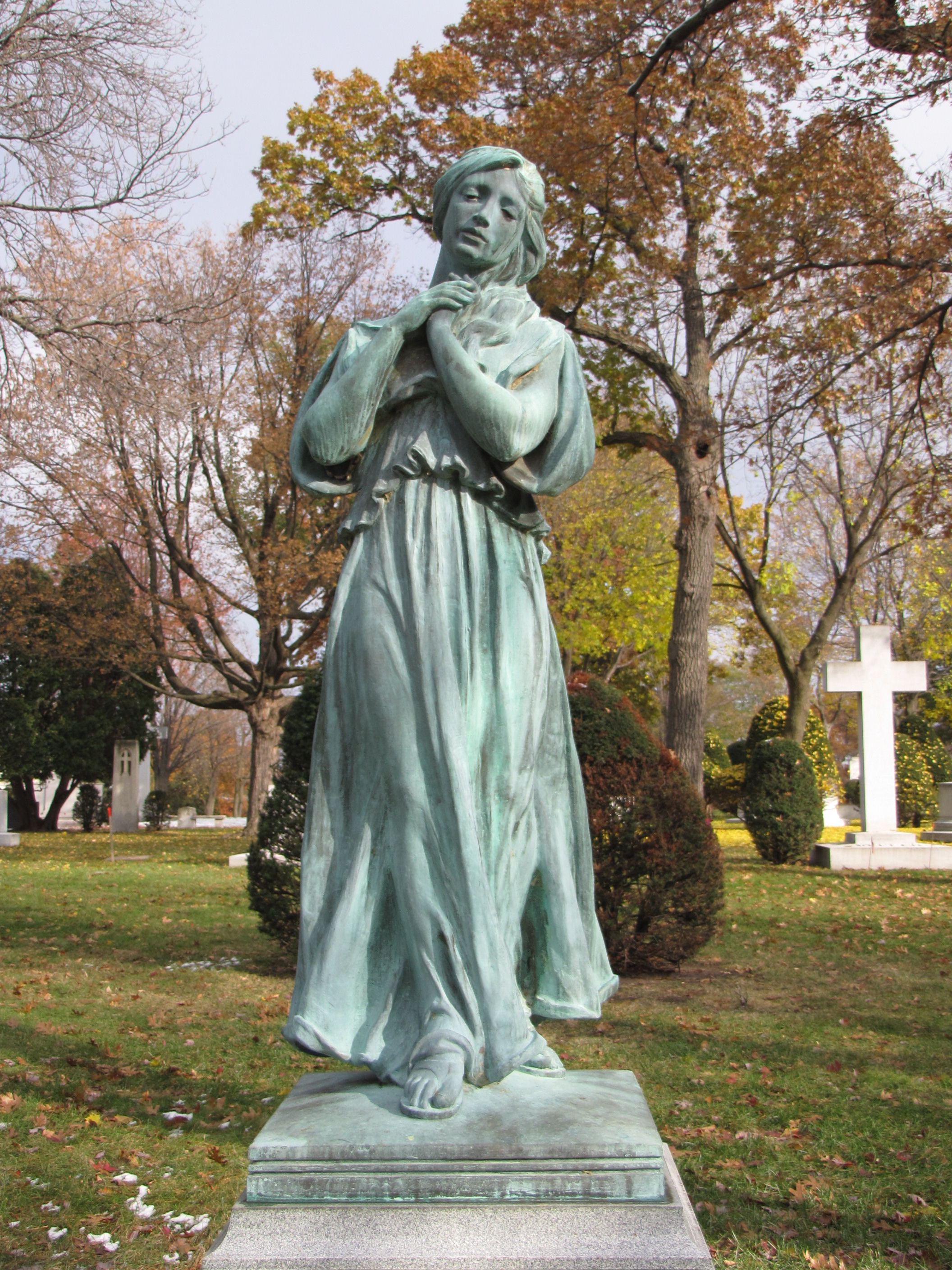 Nellie created famous works, such as, the statue of Senator James Harlan which stands in Statuary Hall in the United States Capitol Building; Chief Keokuk in Rand Park in Keokuk, Iowa; and the Polish War Memorial in Chicago. She also returned, in a way, to her earliest work in her father’s workshop—creating cemetery monuments. But this time, she didn’t carve gravestones but instead created sculptures. Below are three examples of her cemetery commissions.