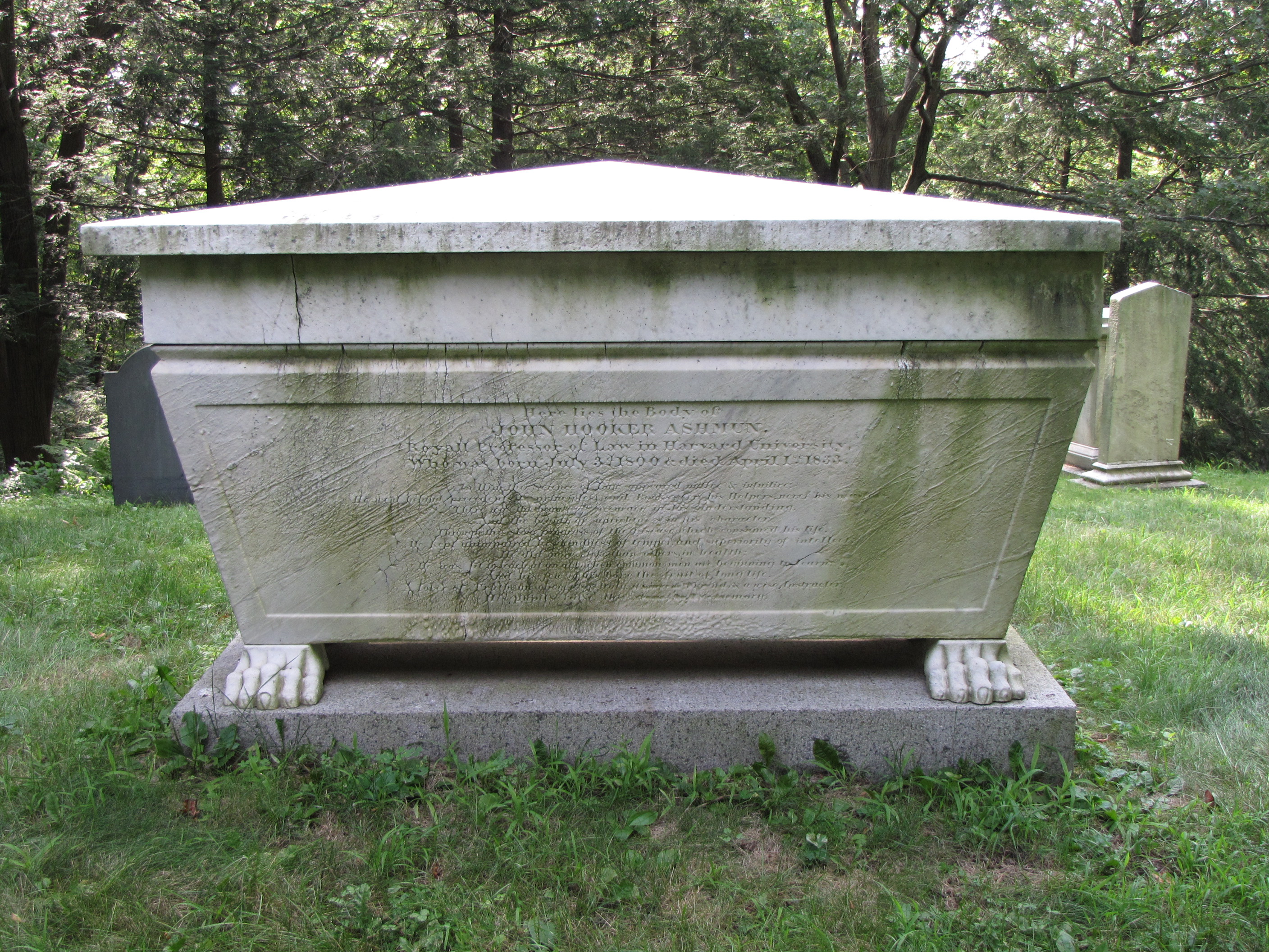 Here lies the Body of JOHN HOOKER ASHMUN Royall Professor of Law in Harvard University Who was born July 3d. 1800 & died April 1, 1833