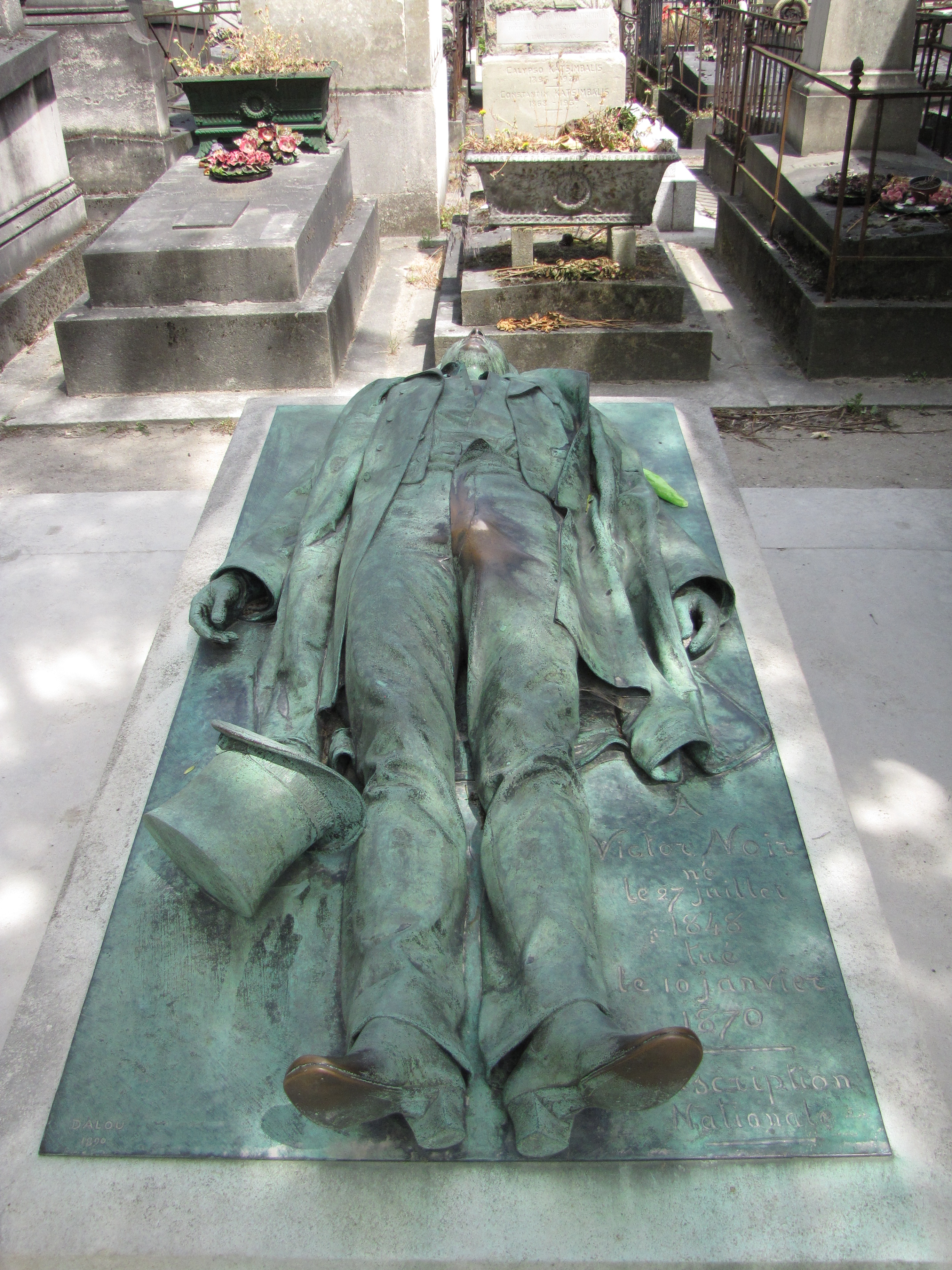 That September the King was overthrown and eventually France established a Republican government. In 1891, Noir, not forgotten by the Republicans, commissioned Jules Dalou, the great French sculptor, to create a bronze statue to honor the fallen journalist and his body was moved to Le Père Lachaise.