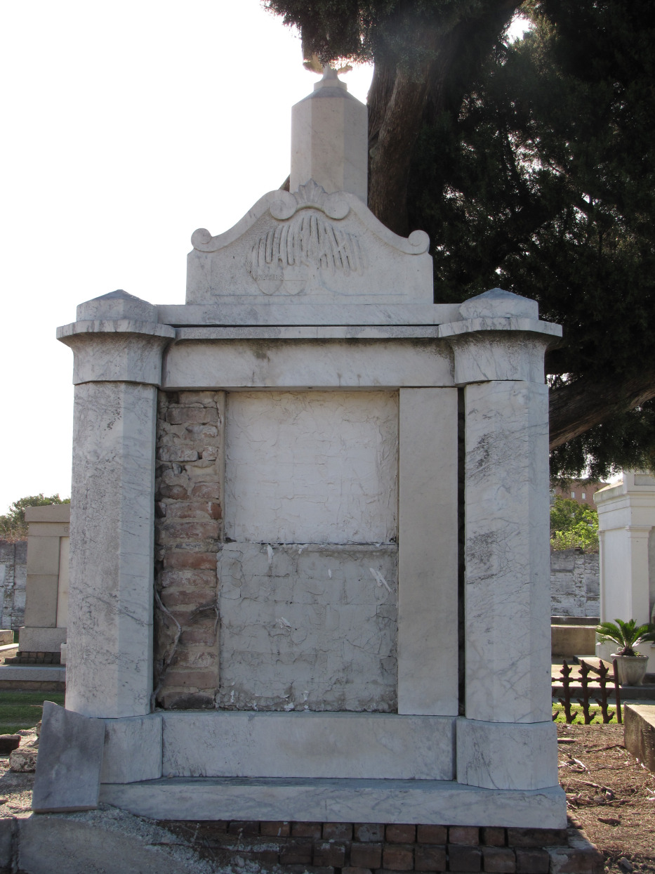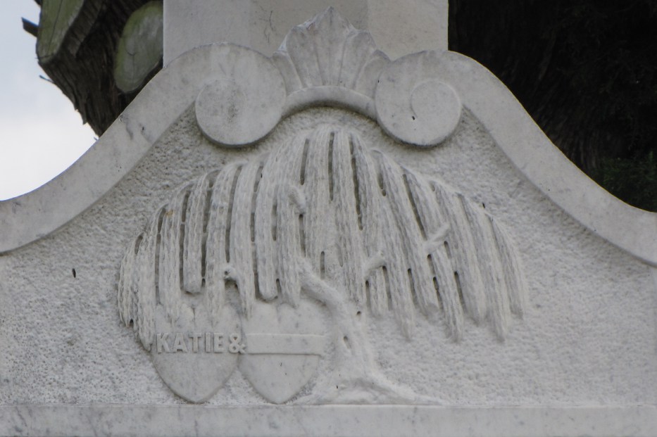 The symbol of two hearts on the tomb in the Cypress Grove Cemetery at New Orleans represents love, as well. The white marble tomb displays the willow, a traditional symbol of sorrow. In this carving the willow branches shelter two hearts on the tomb hinting at grief and a tragic story.