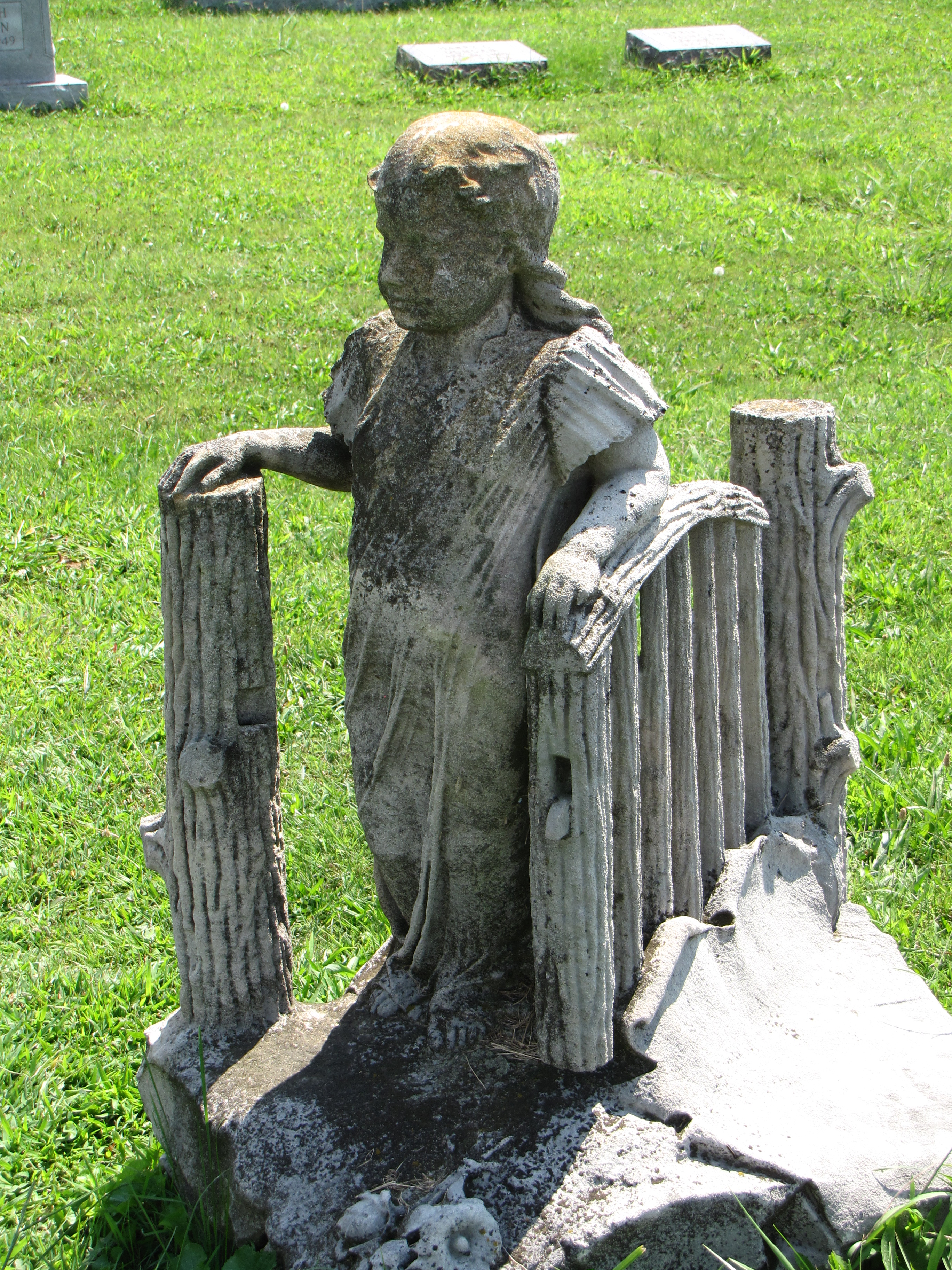 Not only did this stone carver complete many of the projects that were languishing in the Naugle’s workshop, but he also produced a memorial to Caddy, appropriately, standing at the garden gate, as if she were still waiting for her father. By all accounts, he then disappeared almost as if he had been a ghost.
