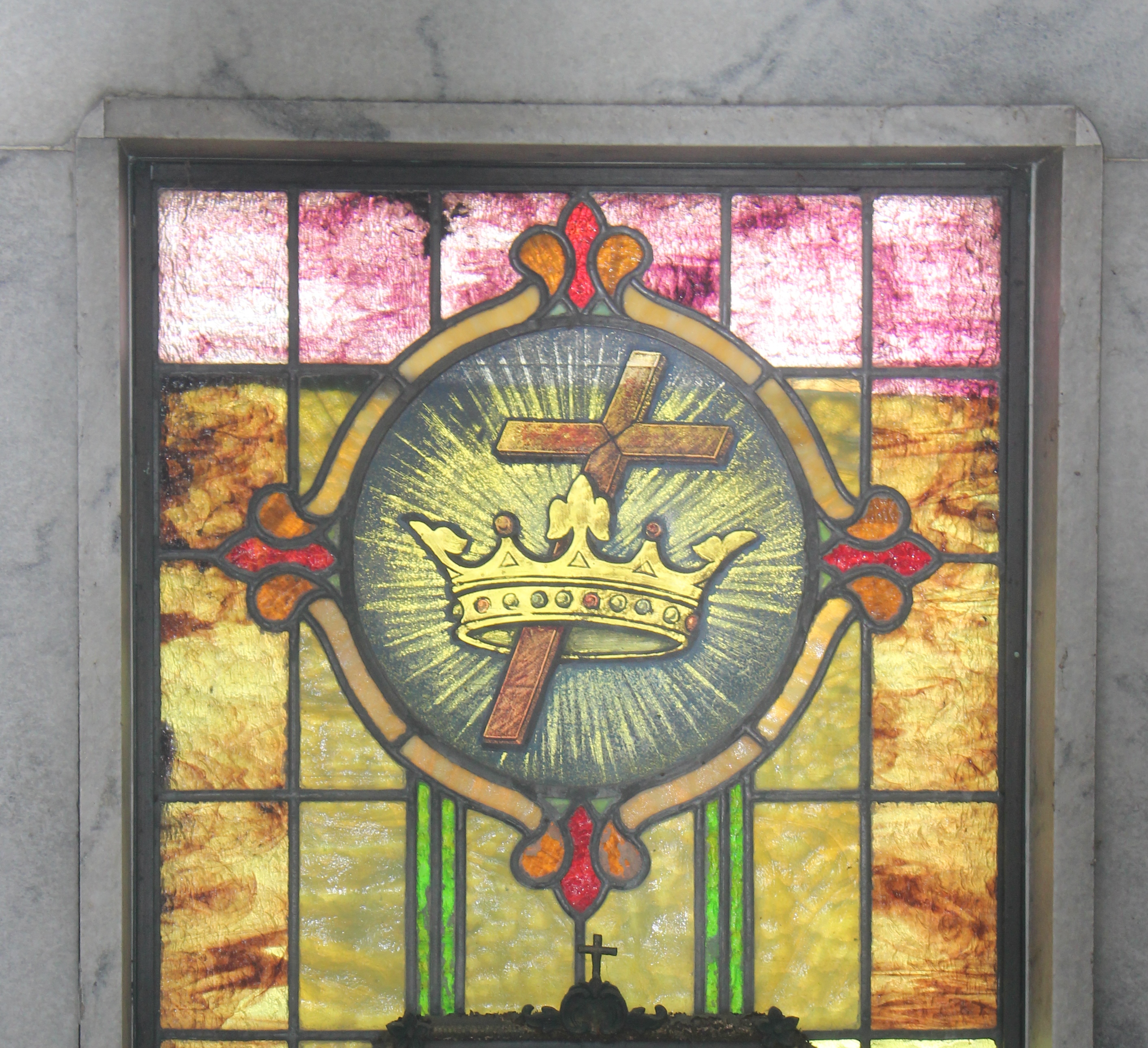 Crown and cross in stained glass