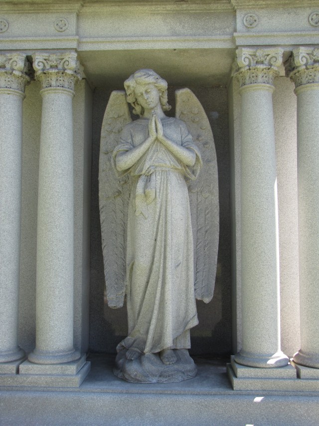 The winged protectors served to watch over the “soul while living, removed occasions of sin and provided protection when danger threatened, interceded on their charges’ behalf, attended at death, eased the transition to the next world, conducted the soul to Heaven, and looked after the gravesite and the deceased’s remains until resurrection.” These were busy angels. In addition to those duties, the praying angels served as an intercessor conveying messages from their charges to Heaven. These angels usually are looking upward toward the Heavens, hands clasped together in prayer, sometimes coupled with emblems of faith, such as, anchors and crosses, often clad in toga-like clothing.