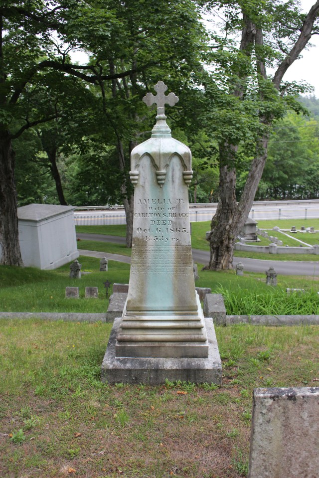 On the opposite side on the monument is the simple inscription for Carlton Sylvanus Bragg, who died in Boston, 11 years after his beloved wife. He has no epitaph.