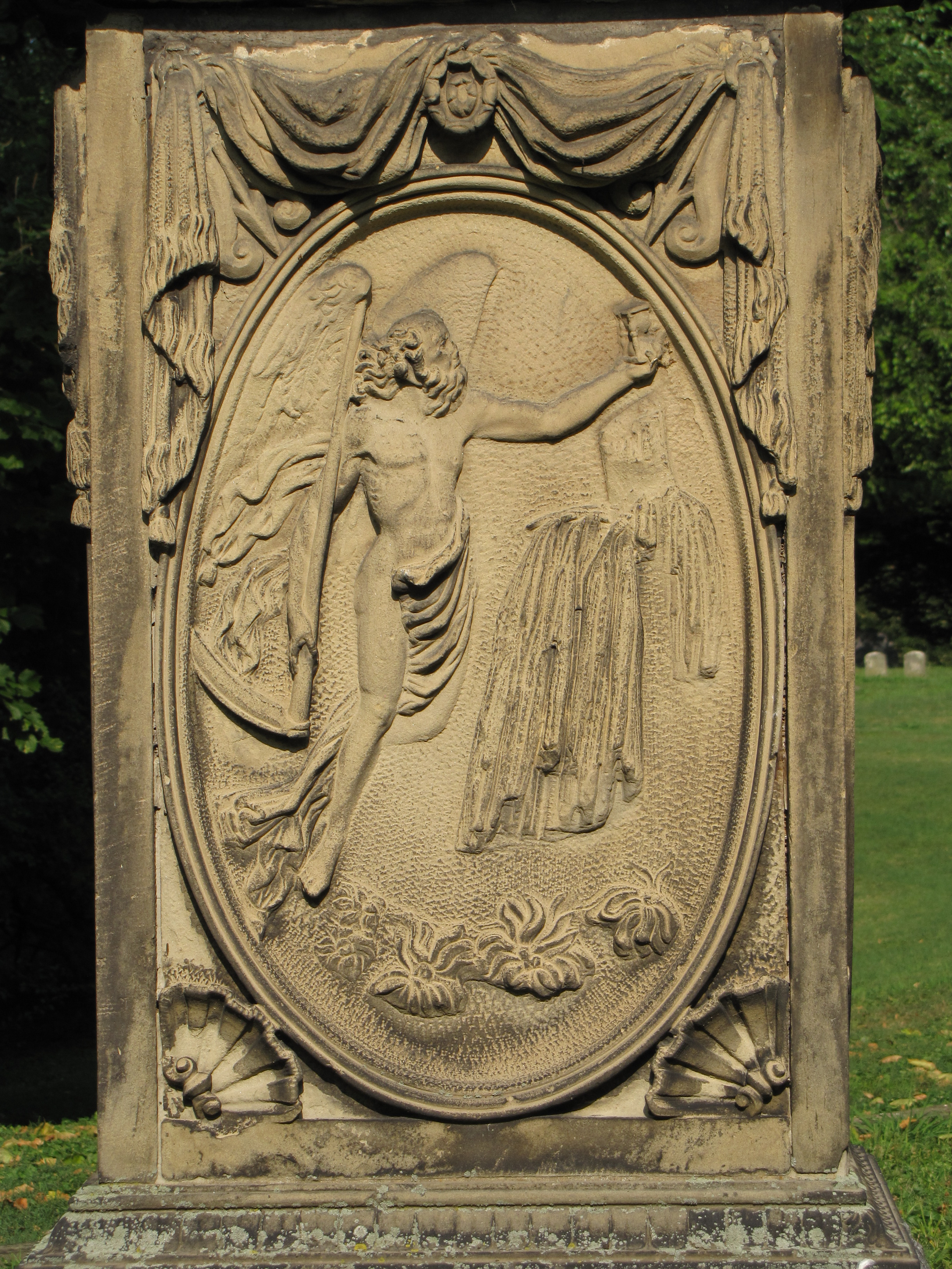 The face of the Owen and Ann Cwathmey Monument at the Cave Hill Cemetery, Louisville, Kentucky