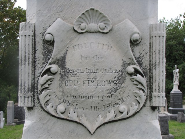 On the cartouche on the opposite side from his name, is the dedication from his compatriot Odd Fellow members who erected the gravestone in his honor: