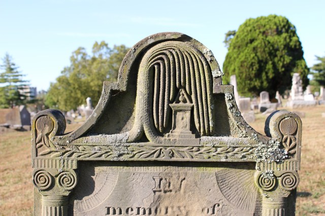 Like many symbols found in the cemetery, they can have multiple meanings, and there can be disagreement about the meaning of the motif—including the willow. Christians saw the ability of the tree to live seemingly no matter how many of the branches were cut from the tree as a symbol of immortality. And, point to the Bible verse, Psalm 137.:2, “We hanged our harps upon the willows in the midst thereof.” As a reference to its Christian origins, though few biblical scholars believe that the willow was the tree quoted in the passages as the willow is not native to the Middle East. Others suggest that the willow motif predates Christianity going back to the time of the Greeks. The willows in Greek mythology was associated with the Underworld. Orpheus carried a willow branch with him when he traveled there to rescue Eurydice from Hades. Whether Greek or biblical, the motif coincided with a neo-classical revival that took place in the mid-18th Century in America.