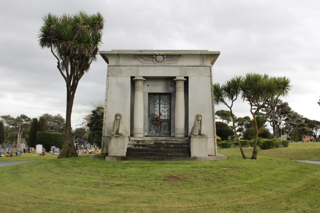 The Whittell Mausoleum is an example of the Egyptian Revival architecture found in many large urban cemeteries. The Egyptian Revival was an architectural movement that swept the United States and Europe. The movement in America was influenced by three separate events—the first was Napoleon’s defeat of Egypt in the 1790s. Later Napoleon published the results of his scientific expedition, which was printed in serial form, the last released in 1826. The second event was when the so-called “Cleopatra’s Needle” was erected in Central Park in New York on February 22, 1881. Lastly, “Egypto-mania,” as some called it, reached fever pitch in November 1922 when King Tut’s tomb was discovered, and the news flashed around the world. The influence of the Egyptian Revival was reflected in buildings in the United States as early as the 1820s. The revival was also found in American cemeteries in the 19th century and on into the 20th century. The obelisk, and ancient Egyptian form, is ubiquitous in cemeteries across the North American continent.
